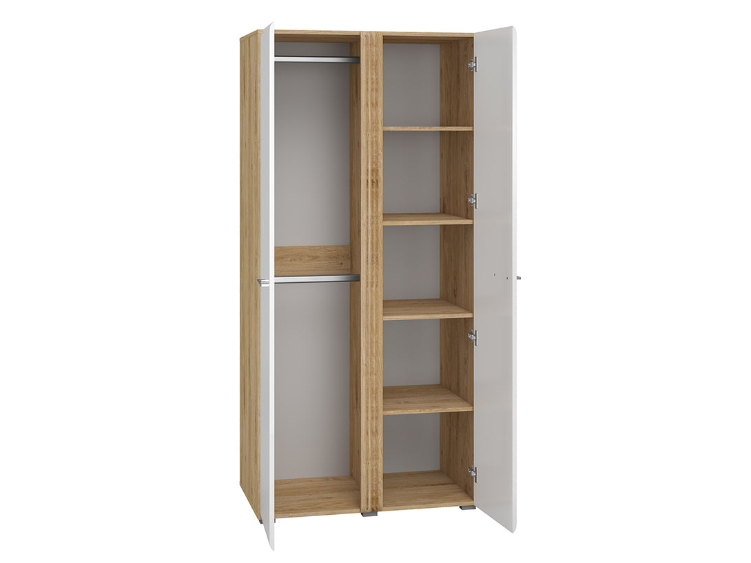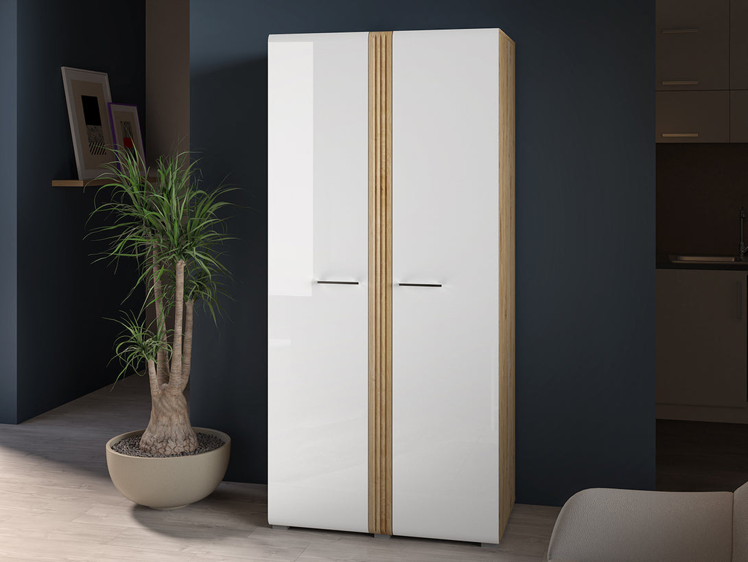 Der ADAGIO I Kleiderschrank überzeugt mit seiner eleganten Kombination aus Holzoptik in Dąb Castello und hochglänzender weißer MDF-Front. Das moderne Design bietet nicht nur eine ansprechende Optik, sondern auch praktischen Stauraum für jedes Schlafzimmer oder Ankleidezimmer.