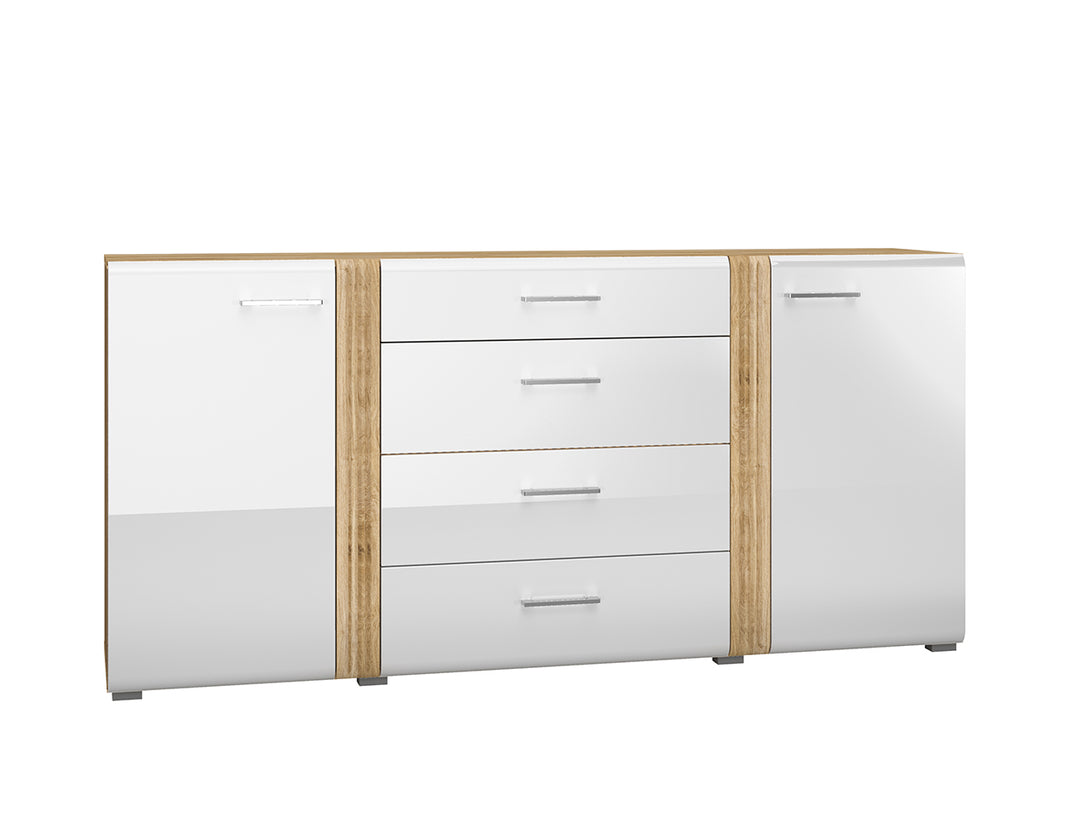 Jedes Möbelstück ist mit soft-close Funktionen ausgestattet und gefertigt aus langlebigen Materialien, die Qualität und Komfort garantieren. Die klare Linienführung und die Kombination aus Holzoptik und Hochglanzfront machen dieses Set zum perfekten Highlight in jedem modernen Wohnzimmer.