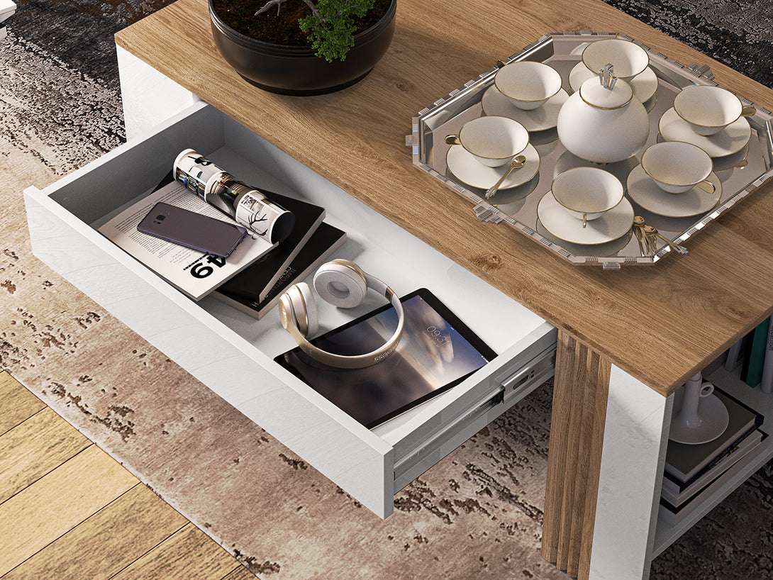 • Modernes Design mit eleganter Kombination aus Holz und Weiß