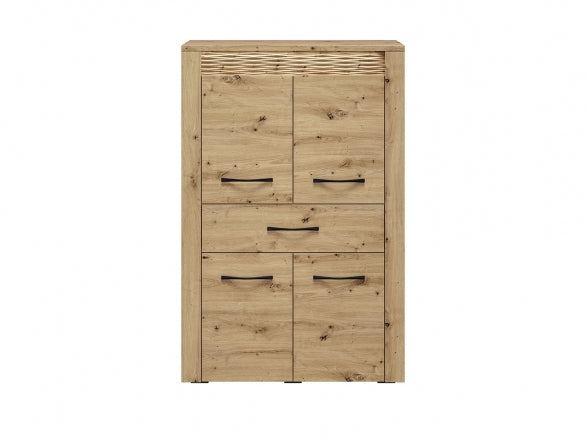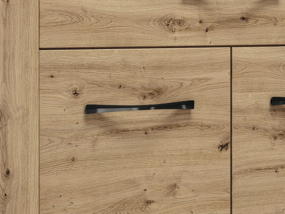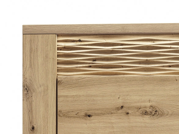 Die ARTIS 06 Kommode überzeugt durch ihr modernes Design in authentischer Holzoptik und bietet dank ihrer durchdachten Aufteilung viel Stauraum für verschiedenste Wohnbereiche. Die strukturierten MDF-Elemente verleihen der Kommode eine besondere Tiefenwirkung und machen sie zu einem stilvollen Hingucker.