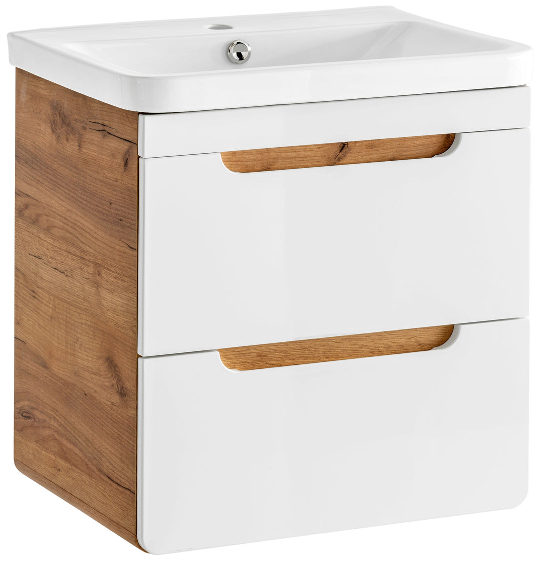 Die ARUBA Badmöbelserie steht für zeitlose Eleganz und moderne Funktionalität. Die gerundeten Fronten in edlem Weiß Hochglanz kombiniert mit Craft Gold Oak Akzenten schaffen ein stilvolles Ambiente in jedem Badezimmer. Dank Soft-Close-Technologie schließen alle Elemente sanft und geräuschlos, während hochwertige Materialien wie 16 mm MDF-Platten mit PCV-Beschichtung für langlebige Qualität sorgen. FSC-zertifizierte Komponenten unterstreichen den umweltfreundlichen Anspruch dieser Serie und bieten eine verantwortungsbewusste Wahl für anspruchsvolle Wohnräume.
