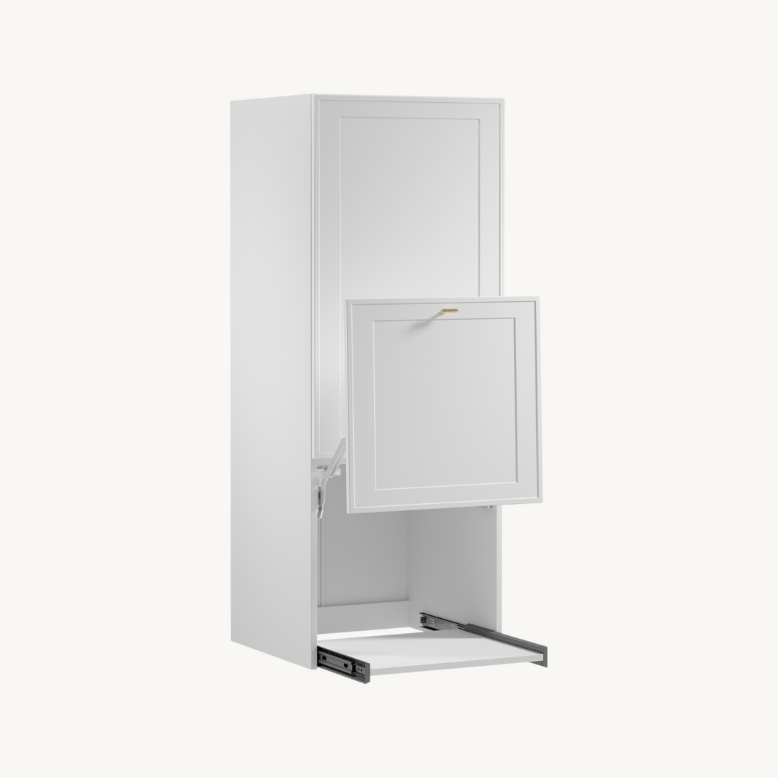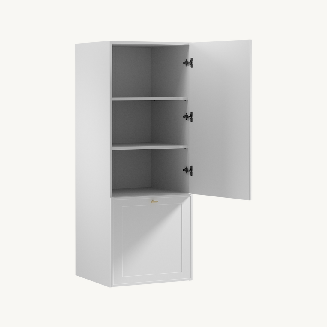 Der Livaro N60N Aufsatzschrank bietet eine flexible Lösung für zusätzlichen Stauraum über bestehenden Unterschränken. Die laminierte MDF-Front ist widerstandsfähig gegen Kratzer und Feuchtigkeit, während der weiße Rahmen ein modernes, elegantes Design unterstreicht. Das Free-Up Hubsystem ermöglicht komfortables Öffnen und Schließen, unterstützt durch die Soft-Close Scharniere. Zwei Einlegeböden im oberen Bereich sowie ein ausziehbares Fach auf Schienen schaffen vielseitige Aufbewahrungsmöglichkeiten für Küchenutensilien. Die universellen Bohrungen erlauben eine flexible Montage.