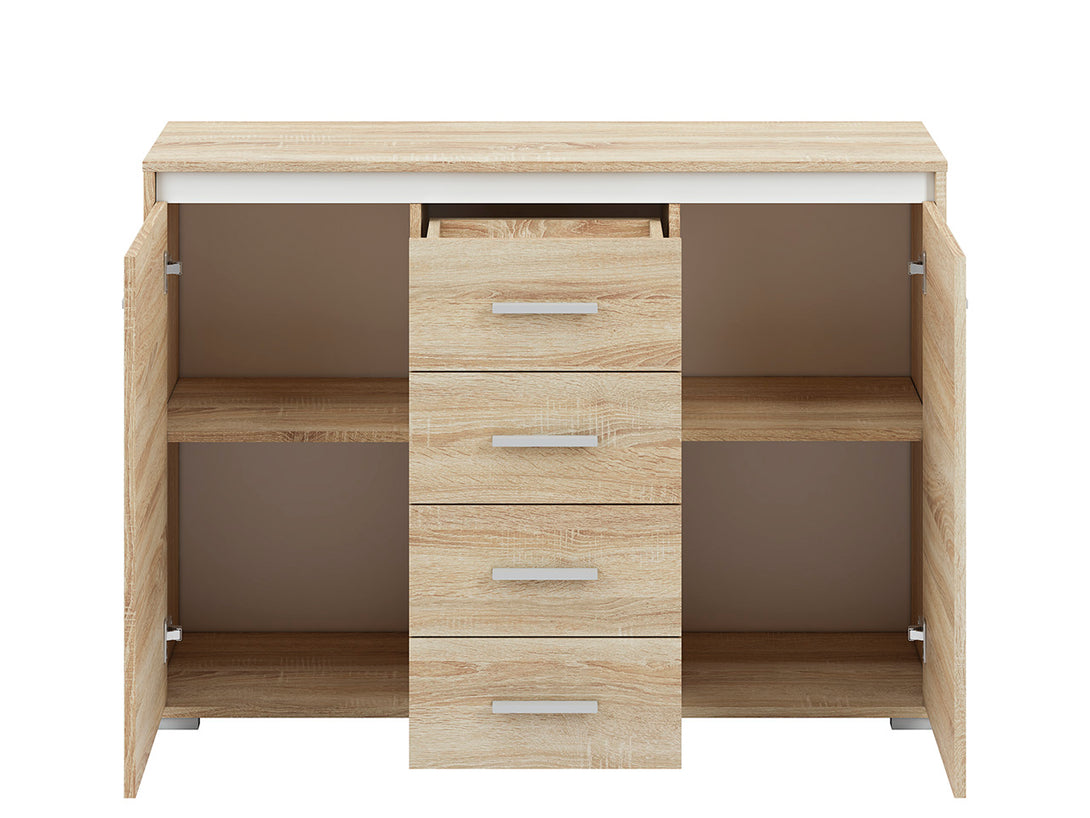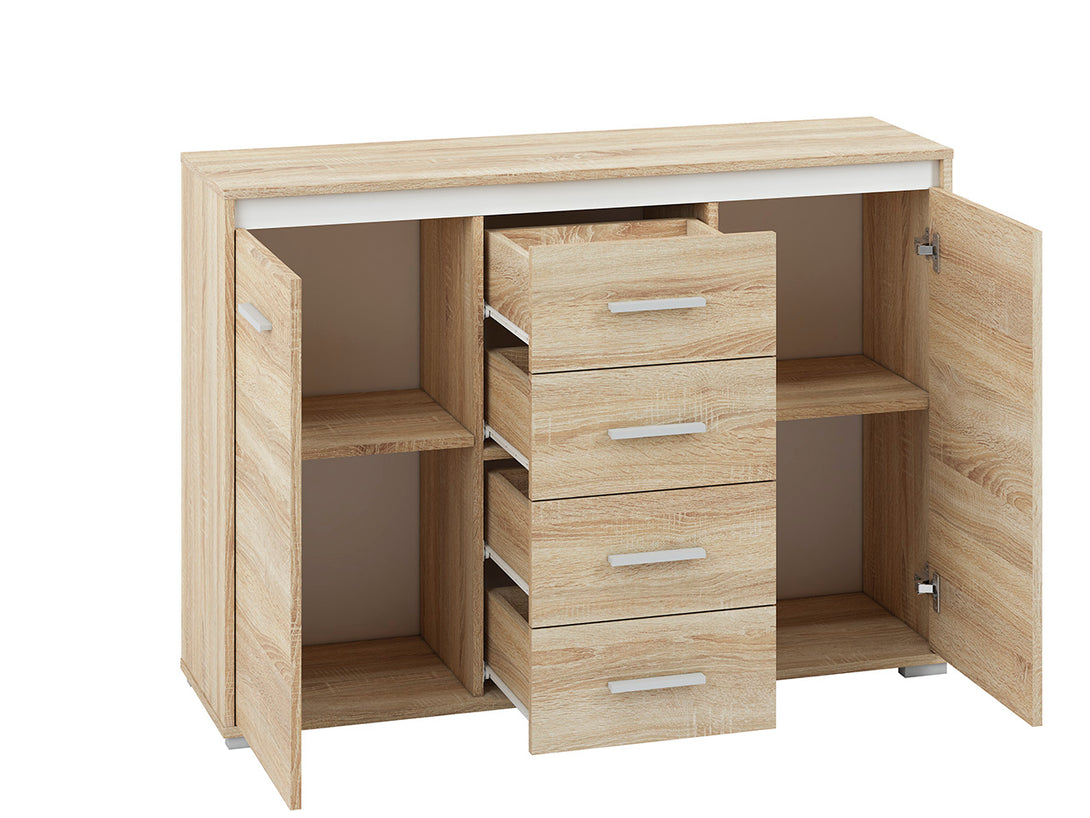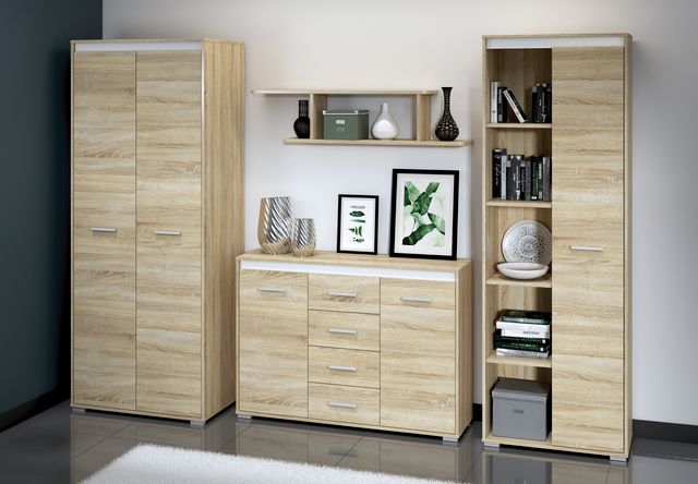 Das AVO Möbel-Set besteht aus drei perfekt abgestimmten Elementen: einem funktionalen Regalschrank mit mehreren Fächern (AVO 06), einem zweitürigen Kleiderschrank für strukturierte Aufbewahrung (AVO 02) sowie einer praktischen Kommode mit geräumigen Schubladen (AVO 14). Alle Möbelstücke sind aus langlebiger, pflegeleichter Spanplatte gefertigt und in heller Sonoma-Holzoptik mit stilvollen Einsätzen in Weiß oder Anthrazit gehalten. Dieses Set bietet durchdachten Stauraum für Wohn- oder Arbeitsbereiche und überzeugt durch ein modernes, klares Design mit hoher Alltagstauglichkeit.