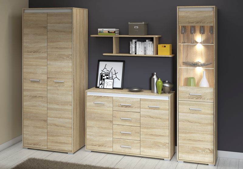 Das AVO Möbel-Set bietet eine stilvolle 3-teilige Lösung für moderne Räume. Es besteht aus einem großzügigen Schwebetürenschrank (AVO 02), einer funktionalen Kommode mit geräumigen Schubladen (AVO 10) und einer eleganten Glasvitrine mit klarer Front (AVO 05). Regale sind nicht im Set enthalten, wodurch eine klare und offene Raumgestaltung ermöglicht wird. Die Kombination aus Sonoma-Holzoptik und anthrazitfarbenen Akzenten verleiht dem Set ein zeitloses, wohnliches Erscheinungsbild. Hochwertige Materialien sorgen für Langlebigkeit und einfache Pflege.