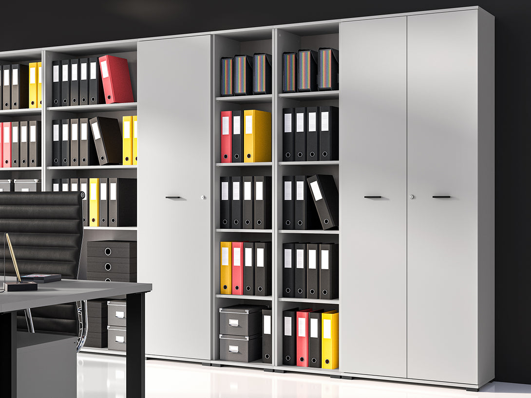 Das BARDO Büroregal vereint modernes Design mit praktischer Funktionalität und eignet sich ideal für die stilvolle Aufbewahrung von Akten, Büchern oder dekorativen Elementen im Büro oder Home-Office. Die hochwertige Verarbeitung und die elegante Farbgebung in Silber Grau sorgen für ein zeitgemäßes Erscheinungsbild, das sich harmonisch in verschiedene Einrichtungskonzepte integrieren lässt.