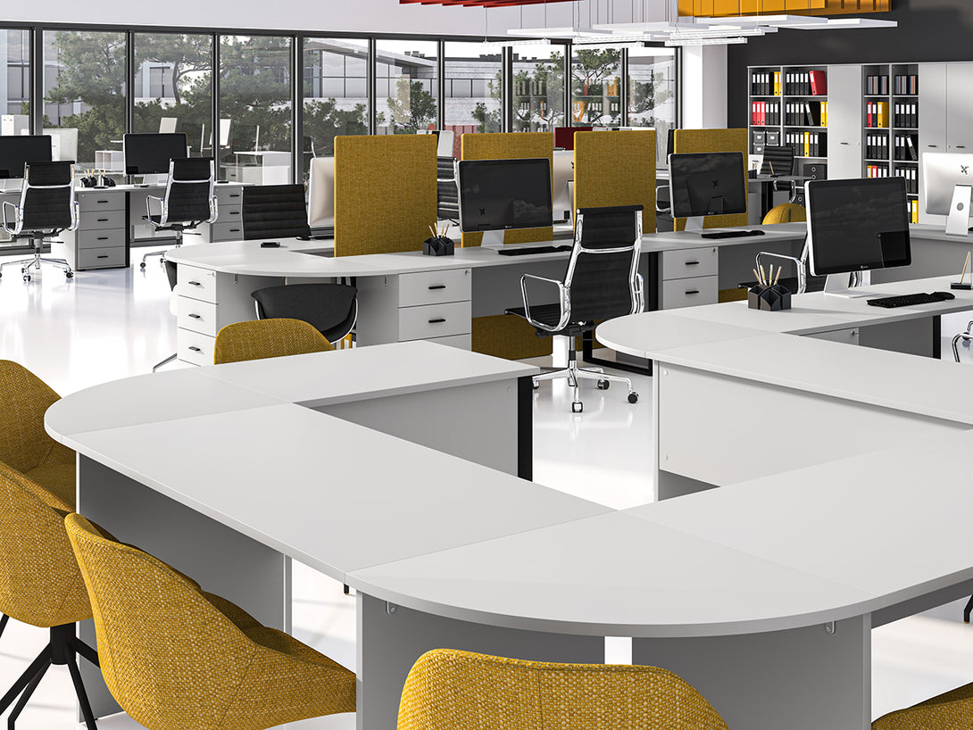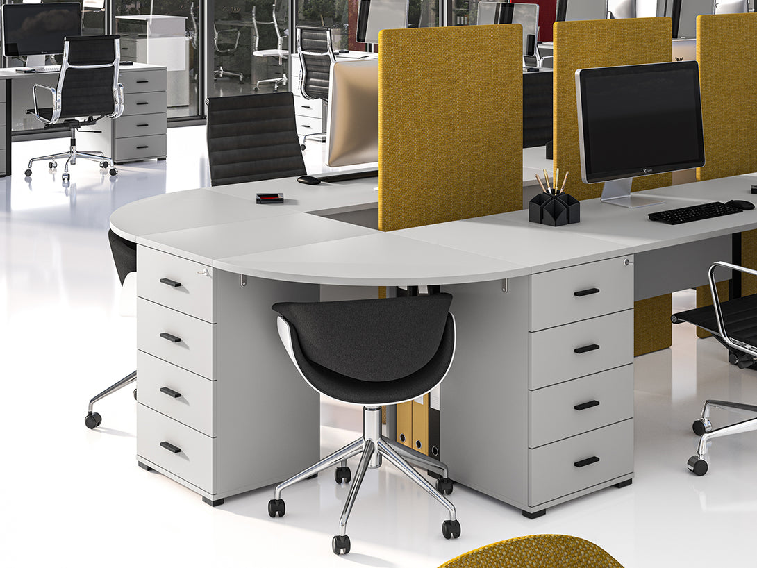 Dank der kompakten quadratischen Form lässt sich das Element vielseitig einsetzen, sei es zur seitlichen Erweiterung oder zur Kombination mehrerer Module für eine individuelle Arbeitsplatzgestaltung. Die robuste Oberfläche bietet Platz für Monitore, Drucker oder weitere Arbeitsmaterialien – ideal für produktive und flexible Arbeitsumgebungen.