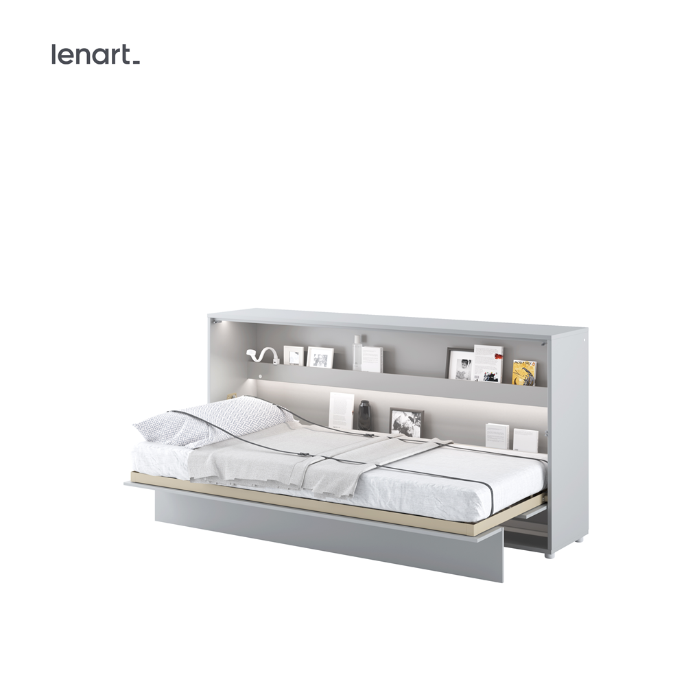 Das Bed Concept horizontale Schrankbett ist die ideale Lösung für alle, die Funktionalität, Komfort und modernes Design in einem Produkt vereinen möchten. Es überzeugt mit einem robusten Metallrahmen, einem stabilen Holzlattenrost und einem pneumatischen Hebemechanismus, der das Öffnen und Schließen erleichtert. Die integrierten Bettgurte sorgen dafür, dass Decken und Kissen sicher verstaut sind – ideal für den täglichen Gebrauch.