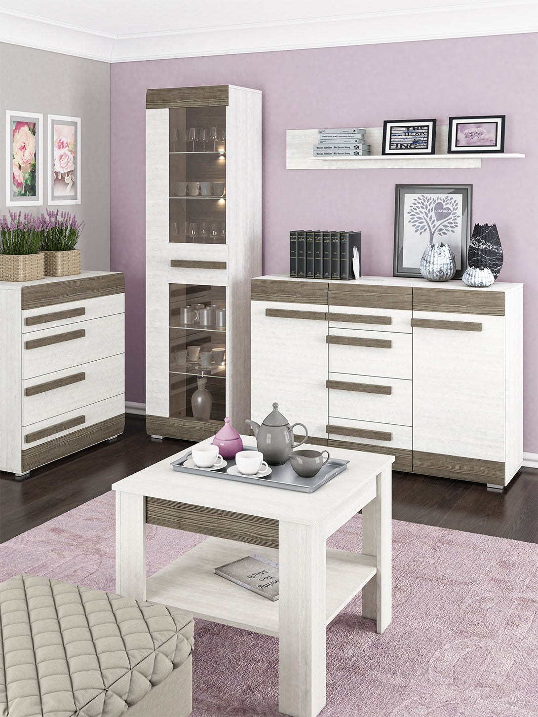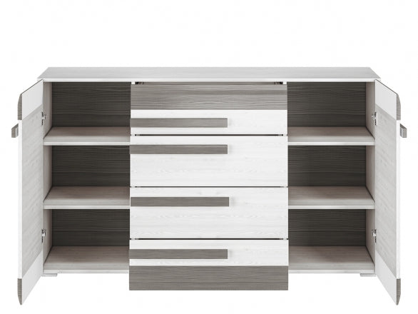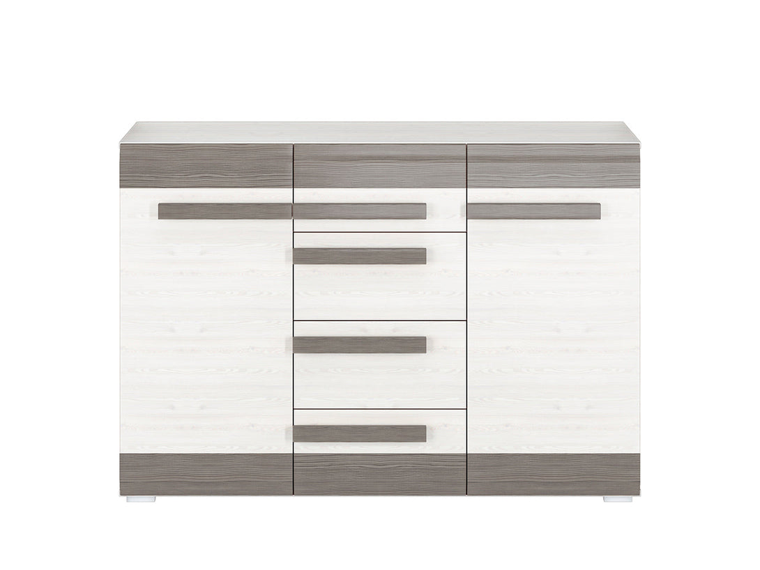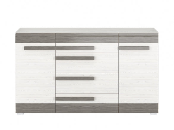 Die BLANCO Kommode überzeugt durch ihre hochwertige Verarbeitung und ein elegantes Erscheinungsbild mit ABS-Kanten und einer robusten, laminierten Oberfläche. Mit ihren großzügigen Schubladen und der erhöhten Tragfähigkeit bietet sie praktischen Stauraum für Wohn-, Schlaf- oder Esszimmer. Die moderne Farbkombination aus Schneeeiche und MDF New Grey rundet das stilvolle Gesamtbild ab und passt sich verschiedenen Einrichtungsstilen harmonisch an.