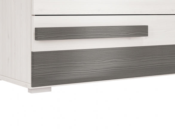 Das Set beinhaltet ein großzügiges Bett, zwei praktische Nachttische sowie eine breite Kommode – perfekt abgestimmt in Farbe, Material und Verarbeitung. Alle Elemente sind robust, pflegeleicht und bieten optimalen Stauraum für den Alltag.