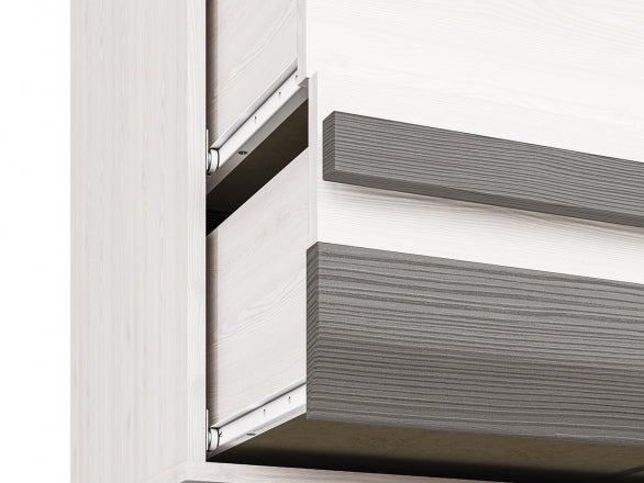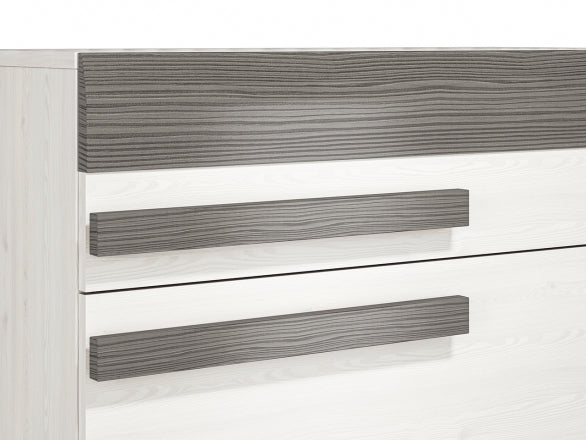 Das BLANCO Schlafzimmer-Set verbindet moderne Optik mit durchdachter Funktionalität und bietet eine ideale Komplettlösung für ein stilvoll eingerichtetes Schlafzimmer. Die Kombination aus schneeweißer Pinie und MDF New Grey sorgt für eine helle, elegante Atmosphäre, während hochwertige Materialien wie ABS-Kanten und laminiertes Holz für Langlebigkeit und Stabilität stehen.
