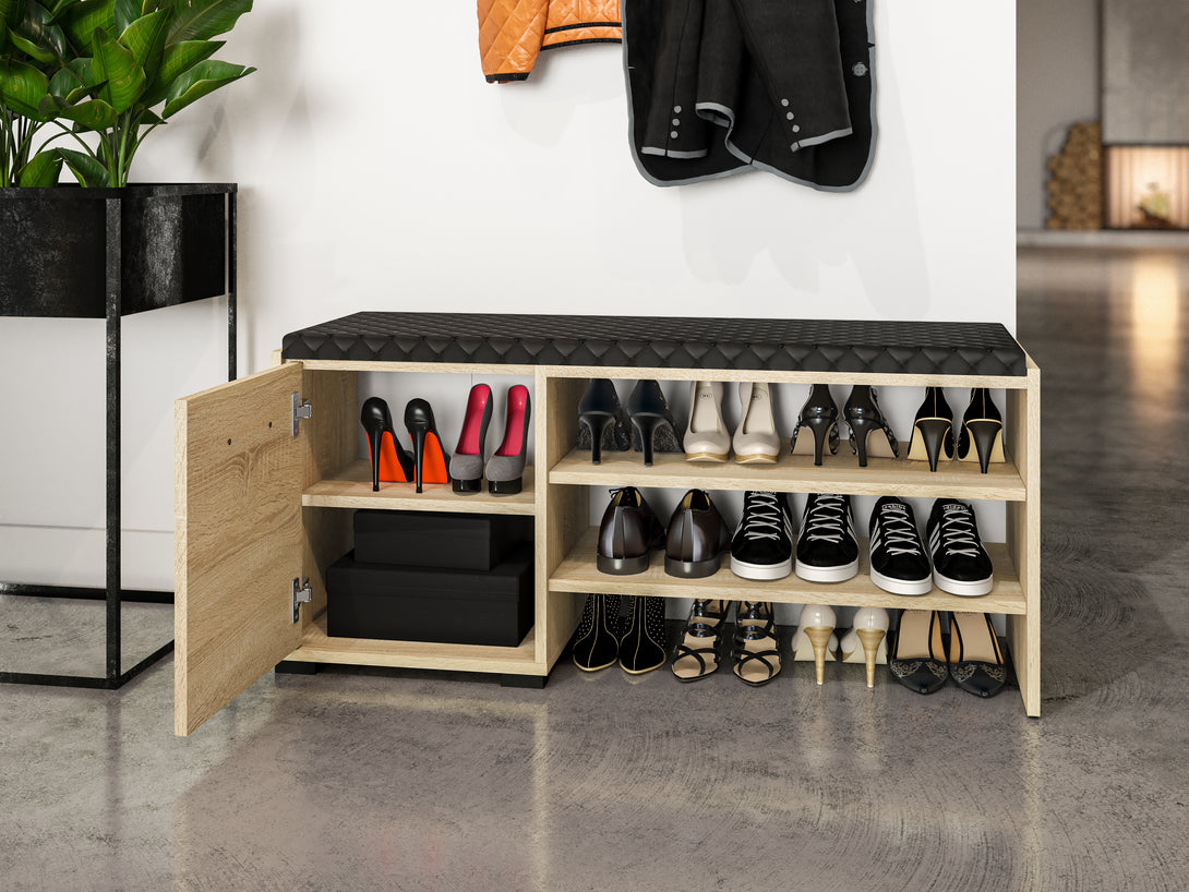 Mit einer Breite von 105 cm bietet er ausreichend Stauraum für zahlreiche Schuhe und Accessoires. Die robuste ABS-Kante und hochwertige laminierte Spanplatte garantieren Langlebigkeit und einfache Pflege im Alltag.
