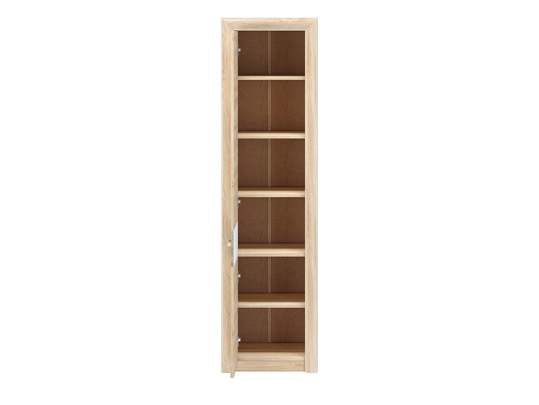 Die CASTEL 03 P und 03 L Hochschränke überzeugen durch ihr schlankes, vertikal ausgerichtetes Design und passen sich mit ihren Türanschlägen rechts (03 P) oder links (03 L) flexibel an jede Raumsituation an. Die Kombination aus heller Sonoma-Oberfläche und MDF-Fronten in Sonoma Trüffel verleiht dem Möbelstück eine elegante Holzoptik, die sich harmonisch in moderne wie klassische Einrichtungen einfügt.