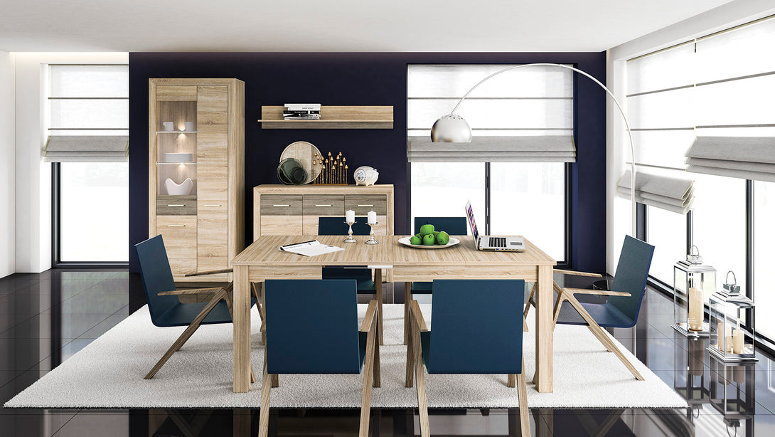 Das CASTEL Vitrinenset kombiniert elegantes Design mit durchdachter Funktionalität für stilvolle Wohnzimmer. Die beiden hohen Vitrinen in abgestuften Breiten bieten großzügigen Stauraum und präsentieren Ihre Lieblingsstücke auf ansprechende Weise hinter gehärtetem Glas. Der warme Holzton der Sonoma Truflowa Front ergänzt sich ideal mit dem helleren Korpus und verleiht Ihrem Wohnraum eine natürliche, moderne Note.