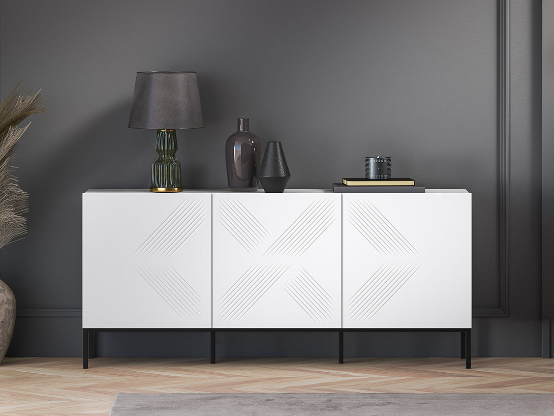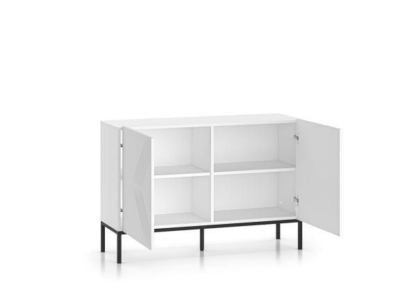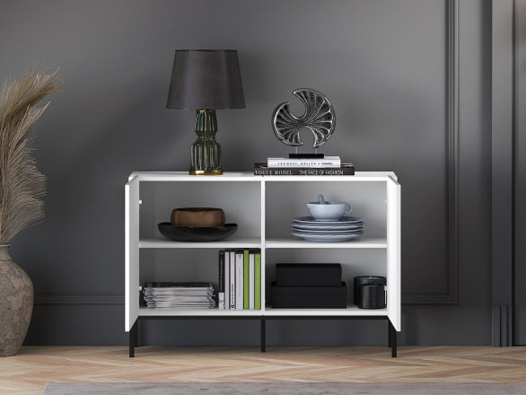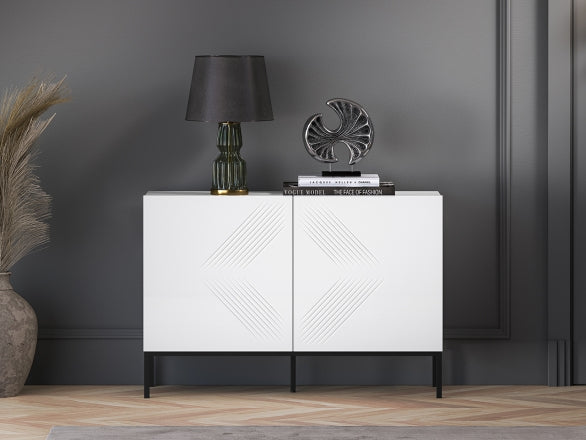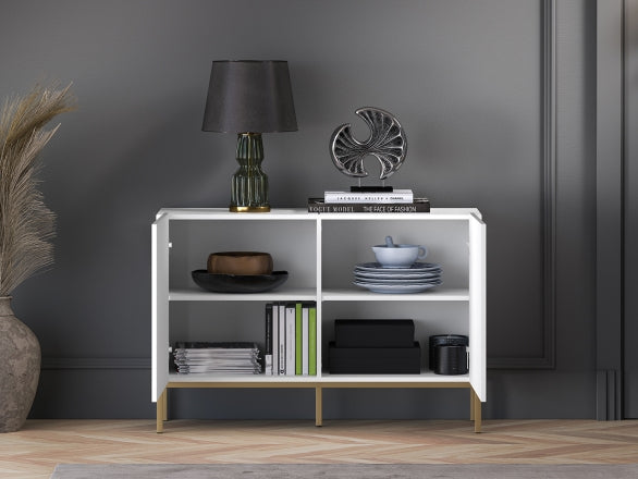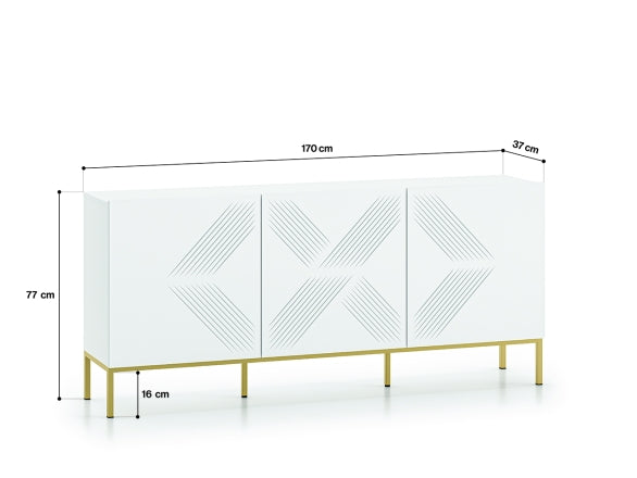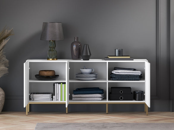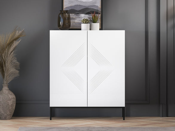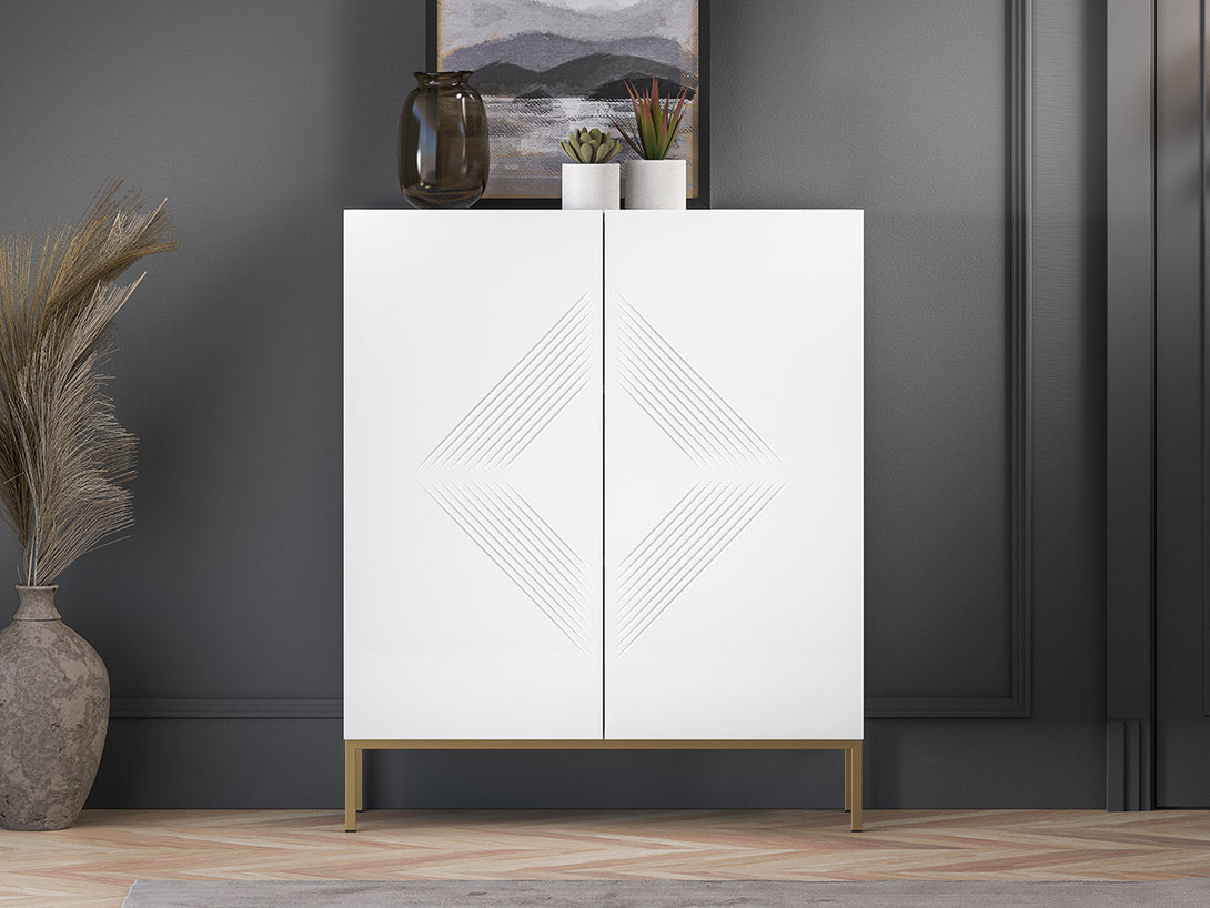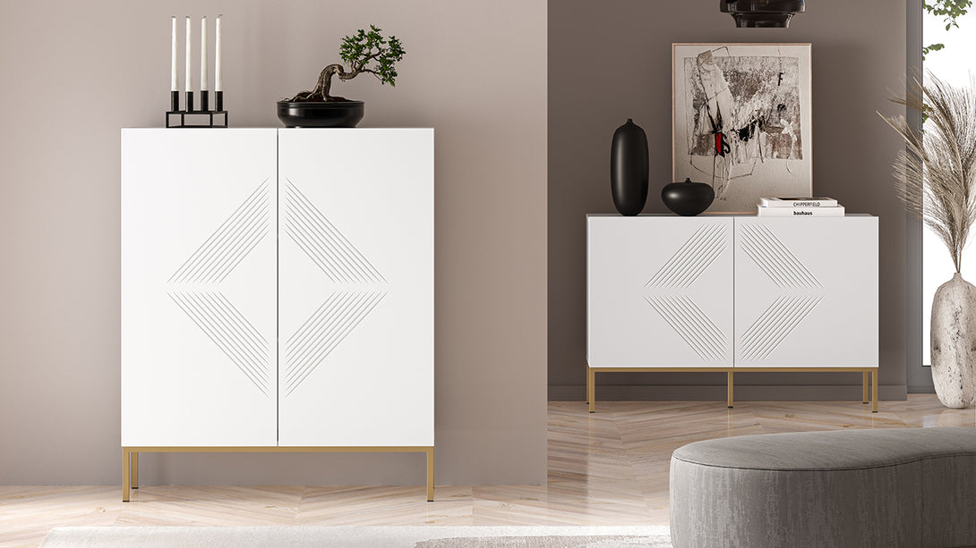 Die CLEARING Kommode überzeugt durch ihr modernes, elegantes Design mit MDF‑Front in Weiß Matt und stilvollen goldenen Akzenten an der Basis. Die hochwertigen Materialien wie laminiertes Holz und ABS‑Kanten sorgen für Langlebigkeit, Feuchtigkeitsbeständigkeit und Kratzfestigkeit, ideal für den täglichen Gebrauch in Wohn- und Schlafzimmern.