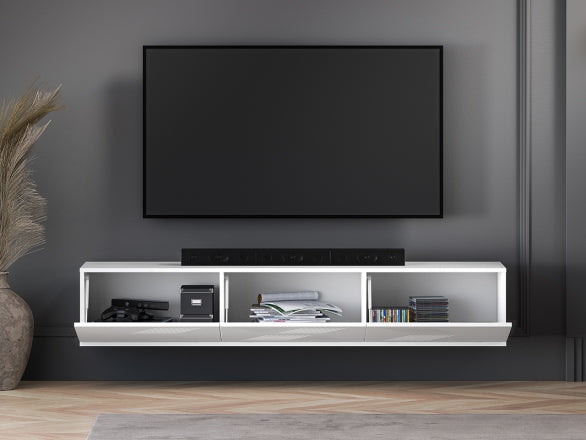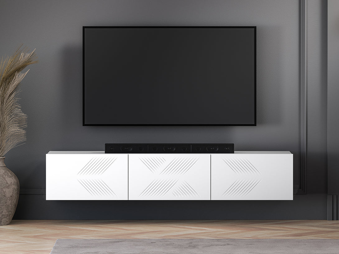 Der CLEARING 07 TV-Schrank kombiniert minimalistisches Design mit hoher Funktionalität für moderne Wohnräume. Die Front aus MDF in Weiß Matt harmoniert perfekt mit dem weißen Korpus, während das laminierte Holz mit ABS‑Kanten Robustheit und Langlebigkeit verleiht – resistent gegen Feuchtigkeit, Kratzer und hohe Temperaturen.