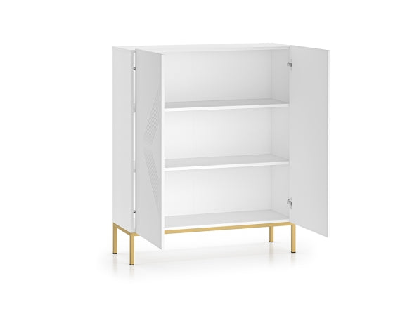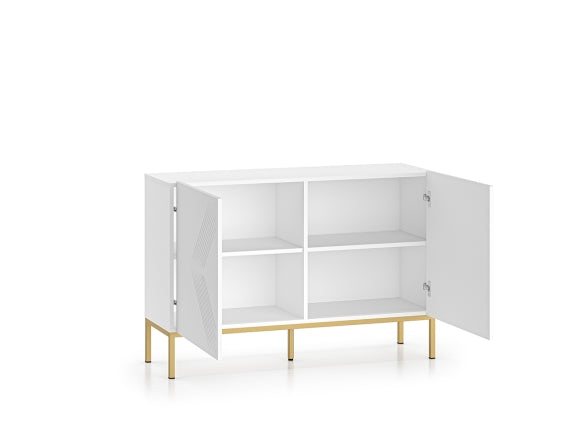 Das CLEARING Kommoden-Set umfasst zwei elegante Möbelstücke: die CLEARING 01 Podstawa und die CLEARING 03 Podstawa. Beide Kommoden zeichnen sich durch eine hochwertige MDF-Front in Weiß Matt sowie einen weißen Korpus aus. Die stilvollen Beine sind ausschließlich in der Farbe Gold erhältlich und setzen einen modernen Akzent im Wohnraum. Die Möbel bestehen aus laminierten Holzplatten mit ABS-Kanten, die für Kratzfestigkeit, Feuchtigkeitsbeständigkeit und Langlebigkeit sorgen.