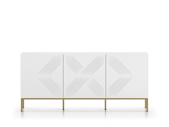 Das CLEARING Kommoden-Set besteht aus drei stilvollen Möbelstücken: der großen Kommode CLEARING 02, der eleganten Schminktisch CLEARING 06 und dem praktischen Nachttisch CLEARING 05. Die Möbel zeichnen sich durch eine hochwertige MDF-Front in Weiß Matt und einen weißen Korpus aus. Die modernen Beine sind in Goldfarbe gehalten und setzen einen eleganten Akzent im Wohnbereich. Die laminierten Holzplatten mit ABS-Kanten bieten Schutz vor Kratzern und Feuchtigkeit sowie eine hohe Widerstandsfähigkeit. Die Schubladen verfügen über einen Vollauszug und sind mit Push-to-Open Mechanismus ausgestattet, was für eine komfortable und moderne Nutzung sorgt. Die Lieferung erfolgt zerlegt in Originalverpackung für einen einfachen Transport und eine schnelle Montage.