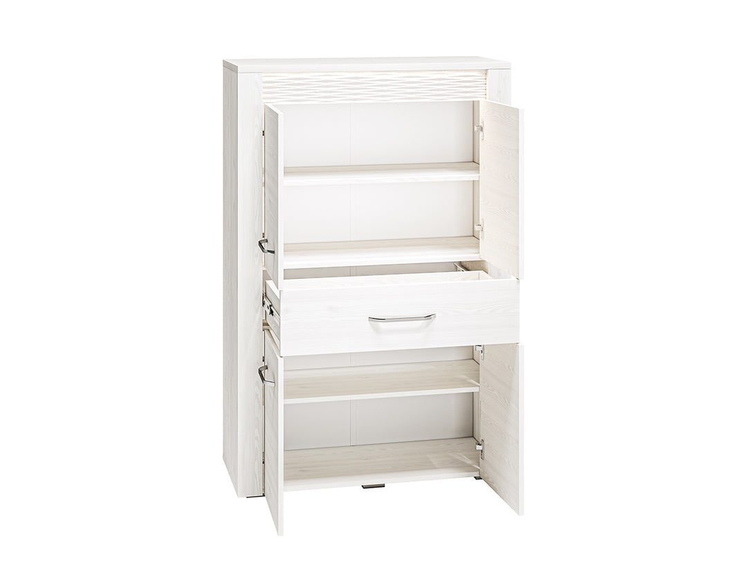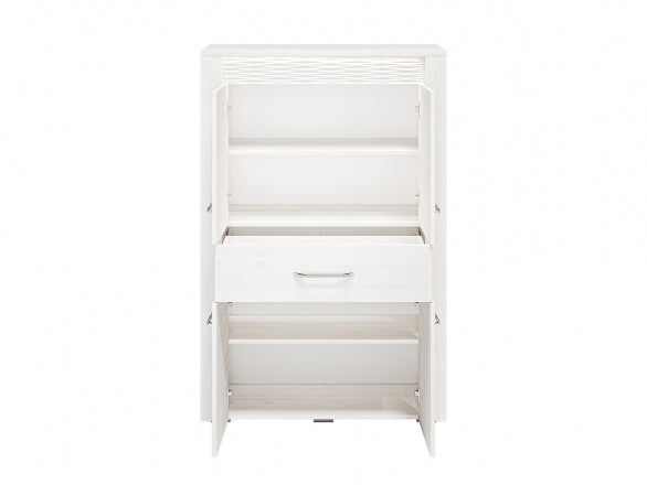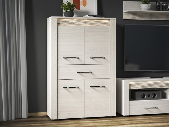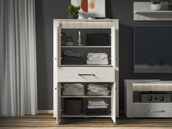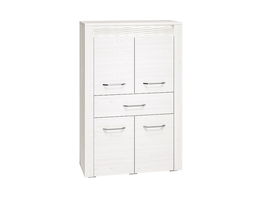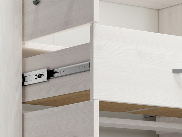Die CLERMONT 06 Kommode kombiniert zeitgemäßes Design mit hoher Funktionalität und bietet großzügigen Stauraum für den täglichen Gebrauch. Die Oberfläche in Snow Pine sowie die MDF-Einsätze sorgen für ein freundliches und elegantes Erscheinungsbild. Dank der hochwertigen Laminatplatte, den stoßfesten ABS-Kanten und den leichtgängigen Schubladen mit Vollauszug und erhöhter Tragfähigkeit ist die Kommode besonders robust und alltagstauglich.