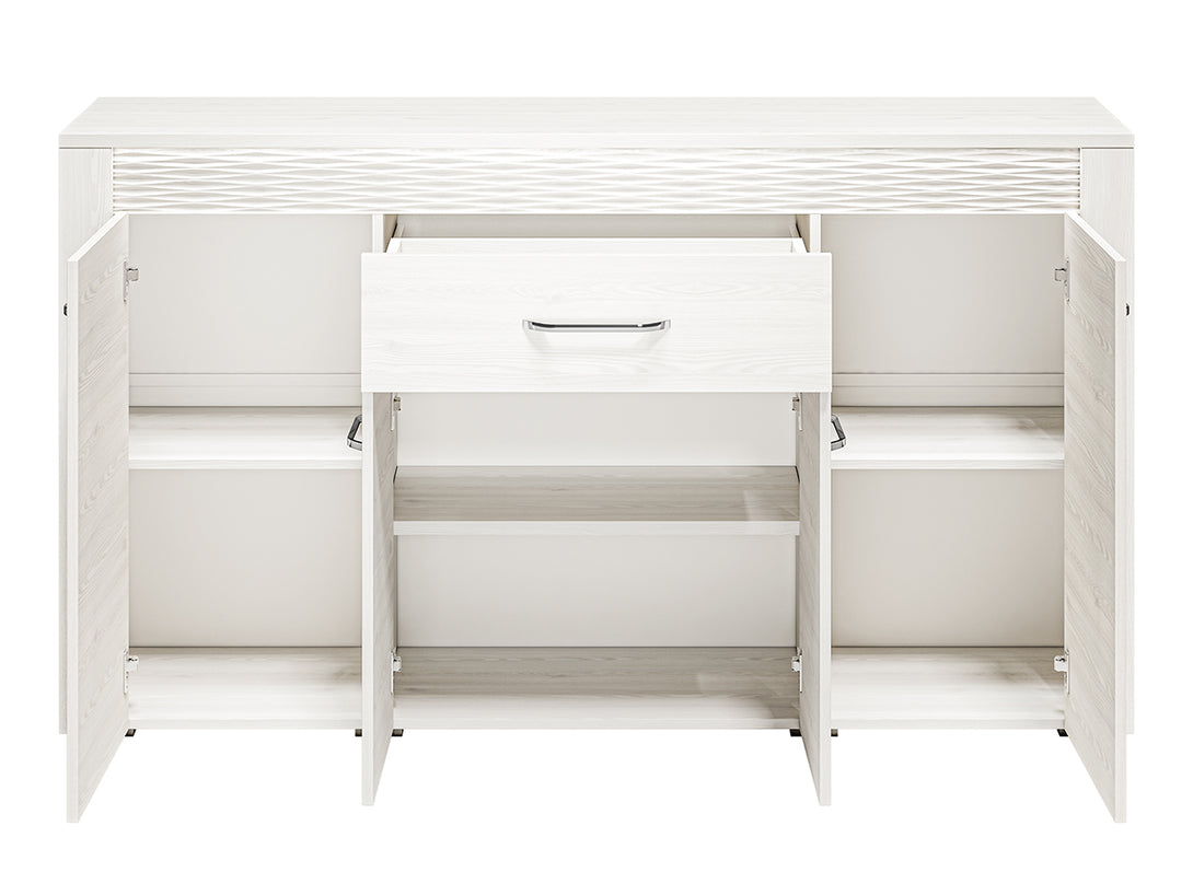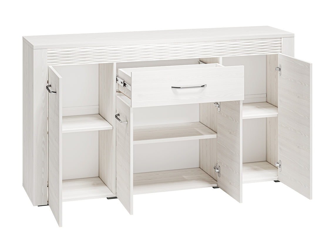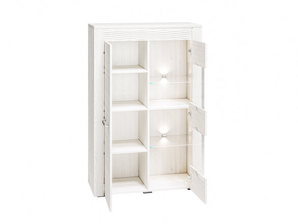 Das CLERMONT Wohnzimmer-Set besteht aus sechs perfekt aufeinander abgestimmten Möbelstücken: einer Kleiderschrank, einer Vitrine, einer breiten Kommode, einem TV-Schrank,einem LED und zwei Wandregalen. Die Kombination aus hochwertiger Verarbeitung und elegantem Holzdekor macht dieses Set zu einer stilvollen und funktionalen Lösung für Ihr Wohnzimmer. Jedes Element des Sets wurde sorgfältig entworfen, um großzügigen Stauraum und ein harmonisches Design zu bieten.