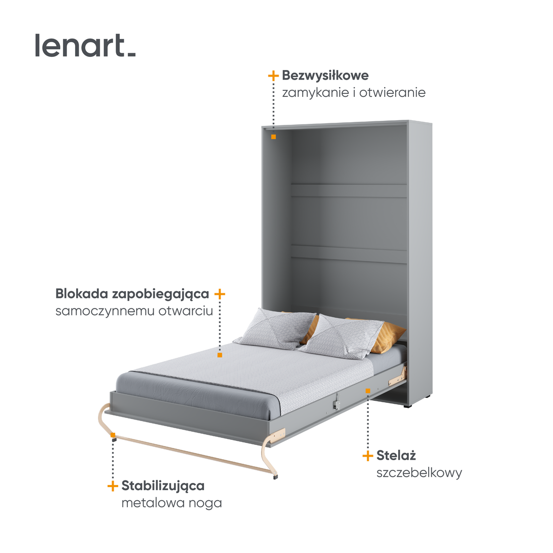 Das CONCEPT PRO Wandbett verwandelt jeden Raum im Handumdrehen in ein vollwertiges Schlafzimmer. Mit nur wenigen Handgriffen gewinnen Sie entweder großzügigen Freiraum oder genießen höchsten Schlafkomfort dank ergonomischem Lattenrost und stabilem Metallrahmen. Die hochwertige Verarbeitung und das funktionale Design wurden mit der Goldmedaille der Internationalen Messe Poznań 2016 ausgezeichnet und erfreuen sich großer Beliebtheit bei Kunden und Fachleuten.