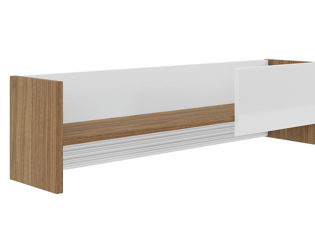 Mit seiner klaren Formgebung und der ansprechenden Nussbaum-/Weiß-Hochglanz-Kombination setzt es stilvolle Akzente und schafft zugleich zusätzlichen Stauraum oder Präsentationsflächen in Ihrem Wohnbereich.