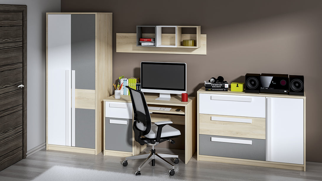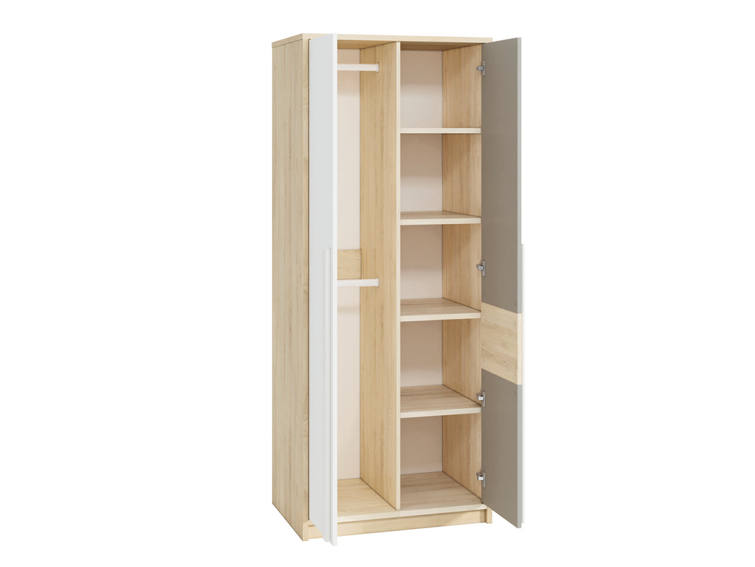 Der DROP 0201 Kleiderschrank überzeugt mit moderner Linienführung und einer harmonischen Kombination aus natürlichen Holzdekoren und eleganten Akzenten. Seine durchdachte Konstruktion bietet großzügigen Stauraum, während hochwertige Materialien für Stabilität und eine lange Lebensdauer sorgen.Durch seine funktionale Aufteilung und die elegante Optik wird dieser Schrank zum Blickfang in jedem Schlafzimmer. Er vereint Ästhetik und praktische Lösungen und passt sich mühelos verschiedenen Wohnstilen an.