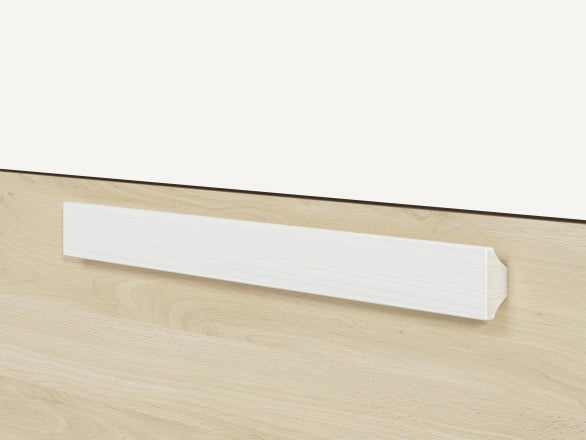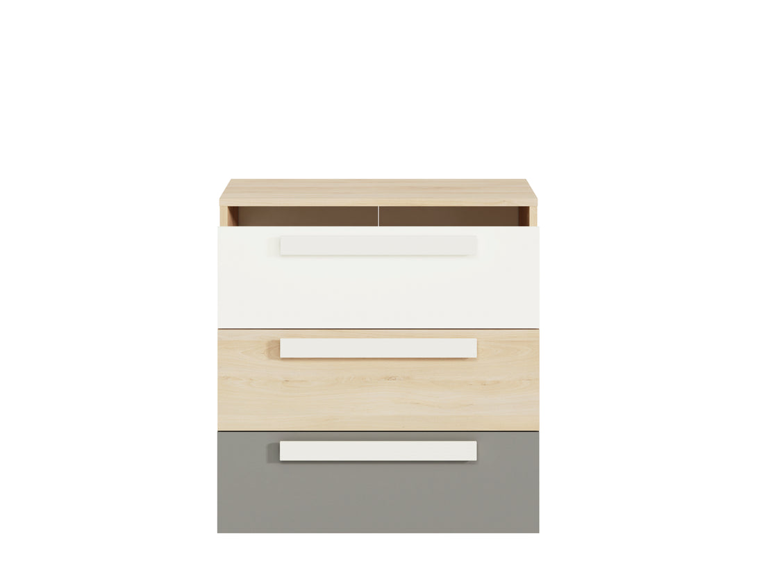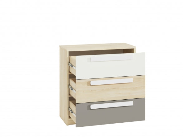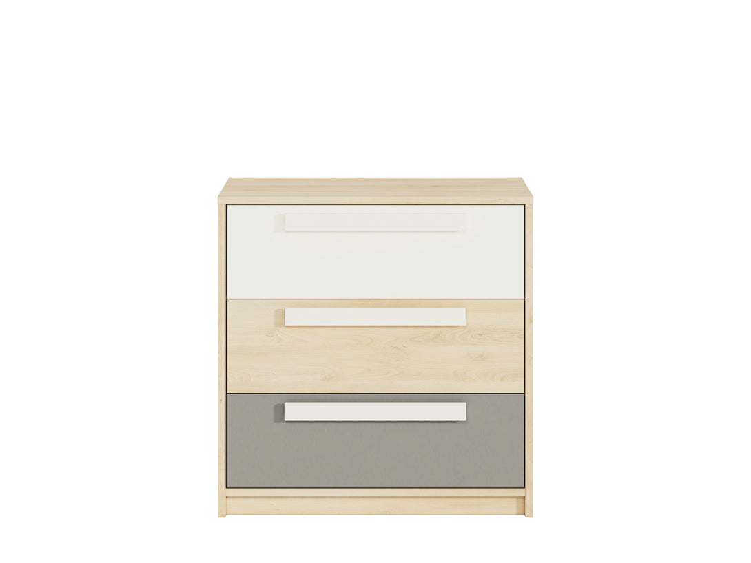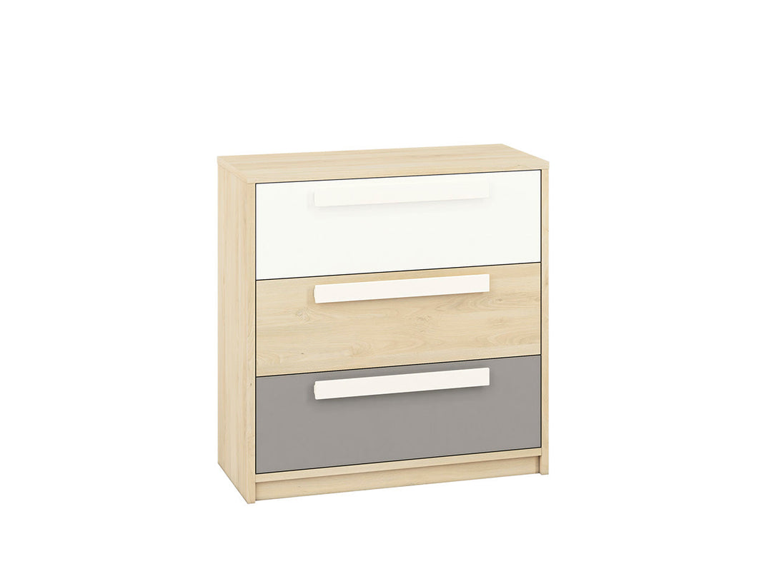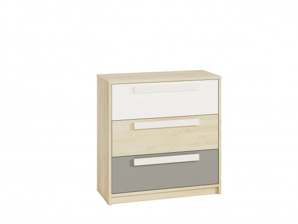 Die DROP Kommode ist eine funktionale und stilvolle Ergänzung für jedes moderne Zuhause. Mit ihrer klaren Linienführung und dem natürlichen Holzdekor bietet sie nicht nur großzügigen Stauraum, sondern auch ein elegantes Design, das sich mühelos in verschiedene Einrichtungsstile integrieren lässt. Aus hochwertiger, laminierter Platte gefertigt, zeichnet sich diese Kommode durch Langlebigkeit und pflegeleichte Oberflächen aus. Die robuste Konstruktion mit ABS-Kanten sorgt für Stabilität, während die verstärkte Schubladenstruktur eine erhöhte Belastbarkeit garantiert.