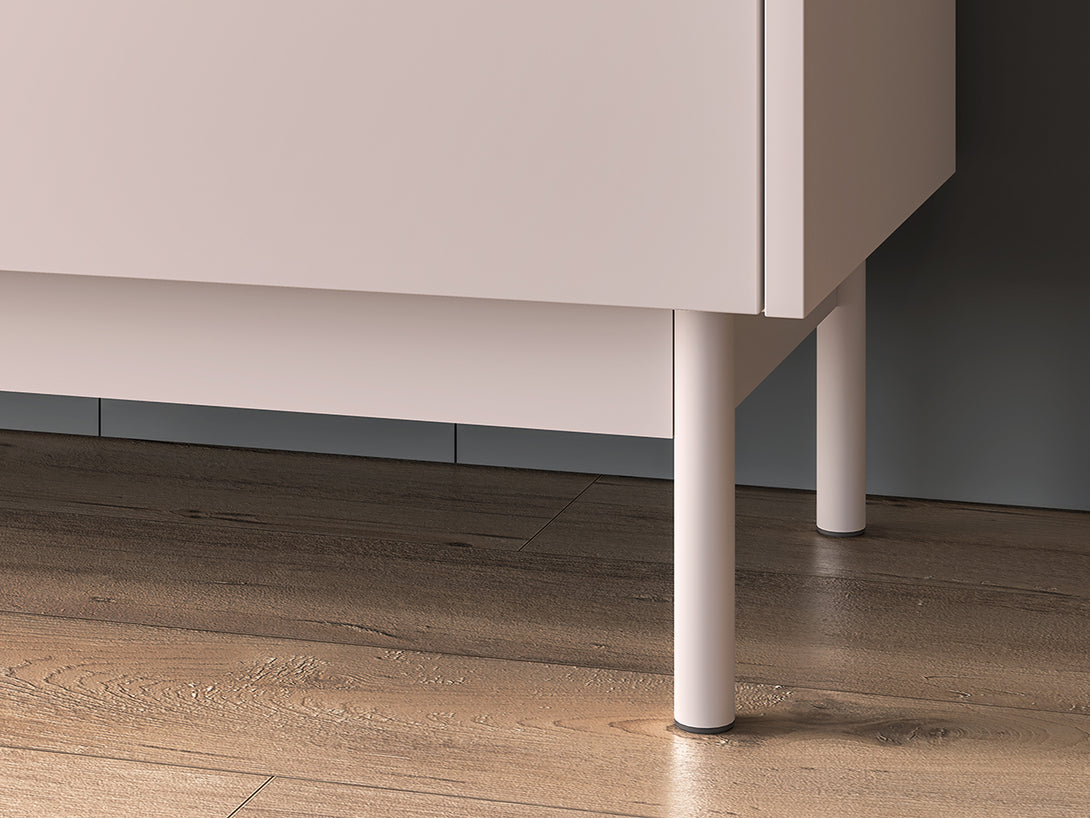 Mit hochwertigen Metallelementen, geräuschlosen Soft-Close-Scharniere und Vollauszugsschubladen kombiniert die Kommode Funktionalität mit zeitgemäßer Optik und hohem Komfort.