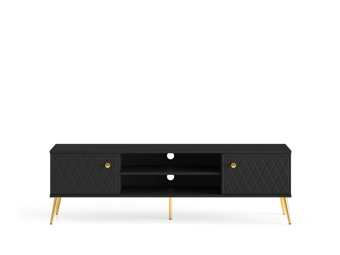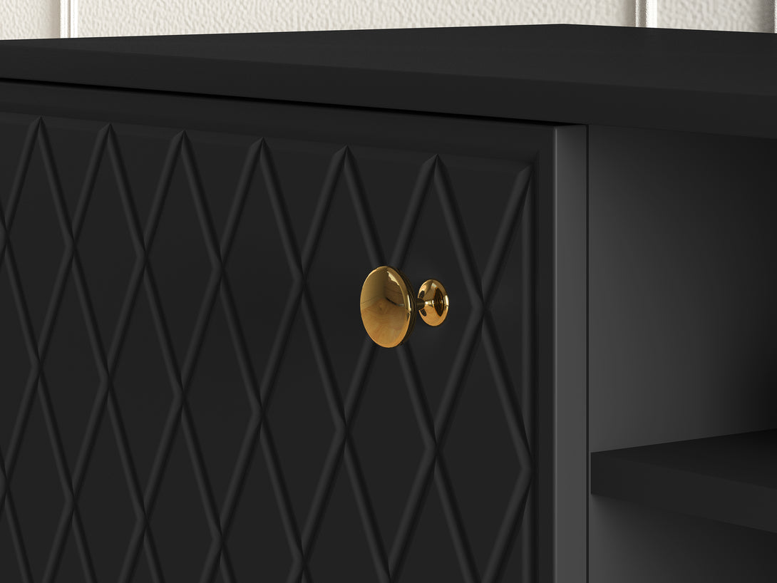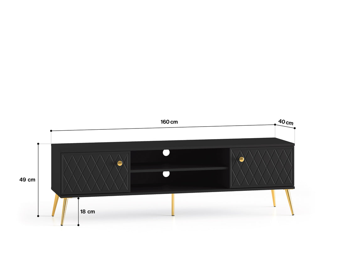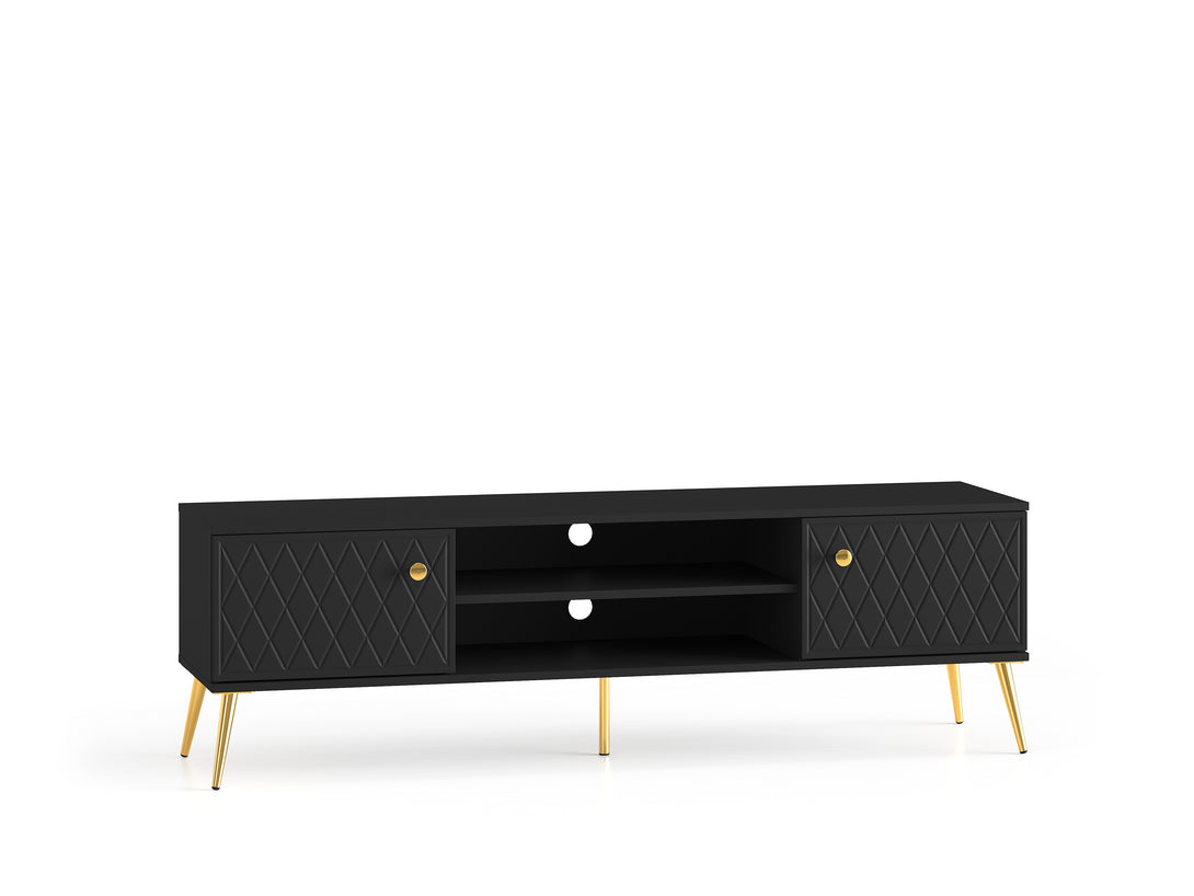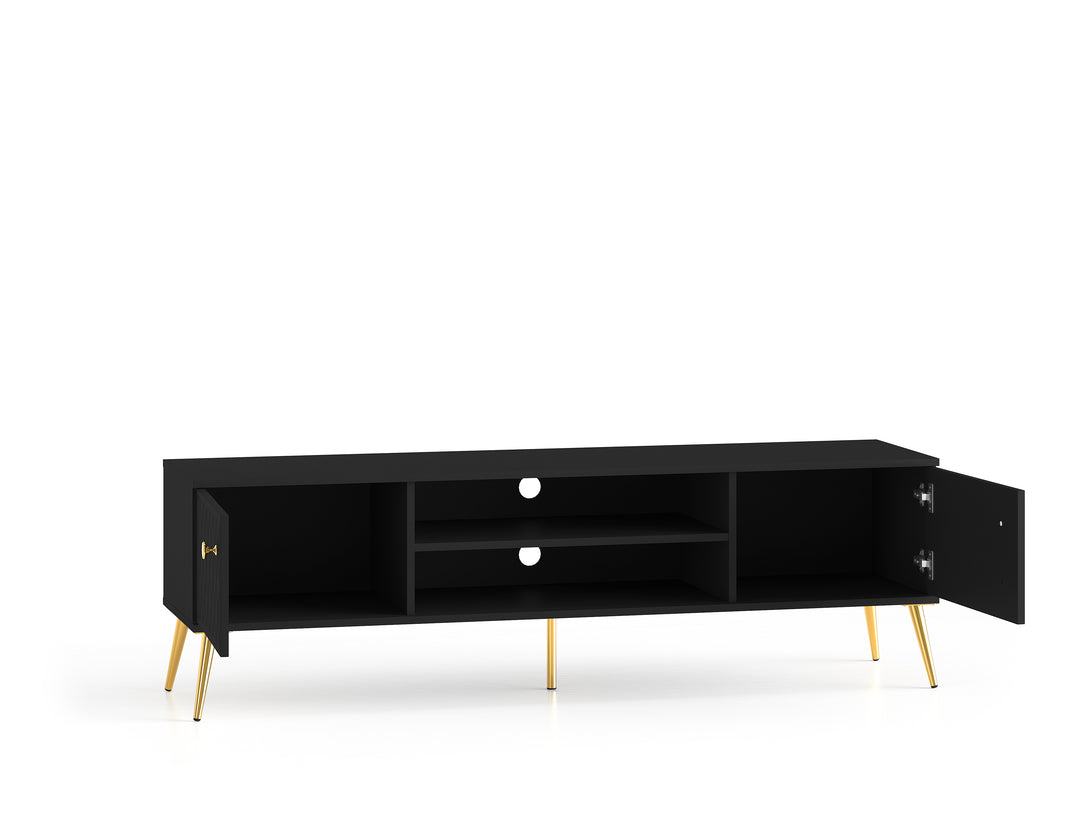 Der ELJOT 07 TV-Schrank vereint modernes Design mit funktionalem Stauraum und eignet sich ideal für stilvolle Wohnbereiche. Mit seiner klaren Linienführung und der schwarzen Front in Mattoptik passt er sich harmonisch jedem Interieur an.