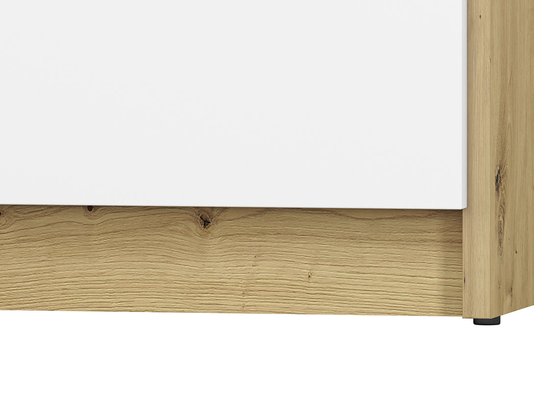 Die kontrastreiche Farbgestaltung in Weiß, Anthrazit und Artisan Eiche verleiht dem Möbelstück einen modernen Look, der sich nahtlos in verschiedene Einrichtungsstile einfügt. Die hochwertige Verarbeitung mit robusten ABS-Kanten sorgt für Stabilität und Langlebigkeit.
