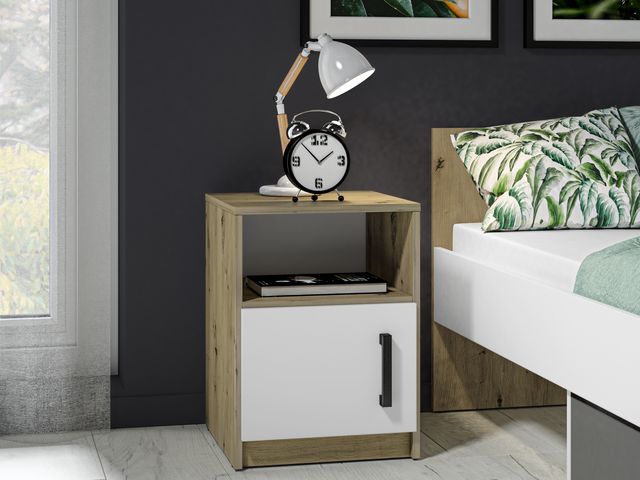 Der FINI 11 Nachtschrank überzeugt mit einem kompakten Design und harmonischer Farbkombination. Perfekt geeignet für moderne Schlafzimmer, bietet er zusätzlichen Stauraum direkt am Bett.