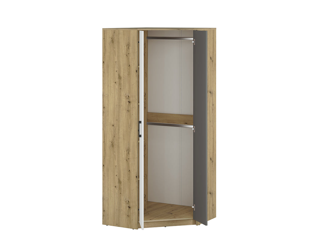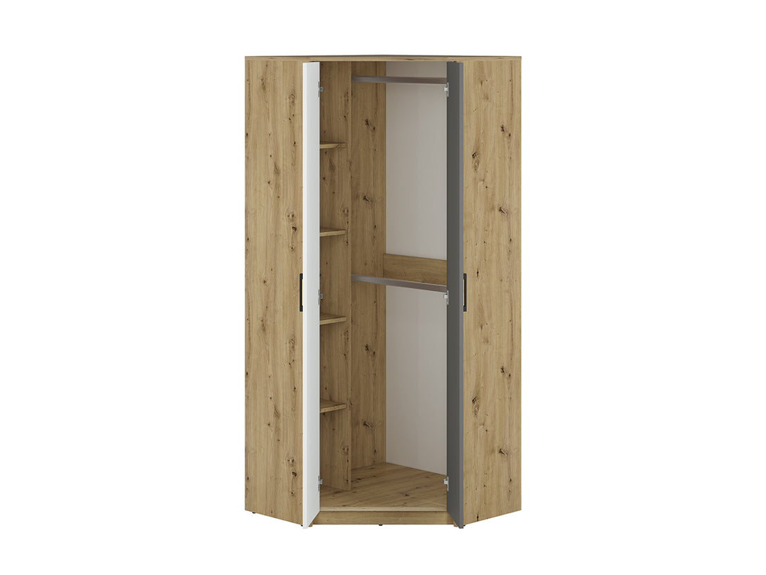 Der FINI 13 Eckkleiderschrank ist die ideale Lösung für eine platzsparende und zugleich stilvolle Aufbewahrung. Mit seinem cleveren Eckdesign nutzt er jede Raumecke optimal aus und bietet großzügigen Stauraum für Kleidung, Schuhe oder Accessoires.
