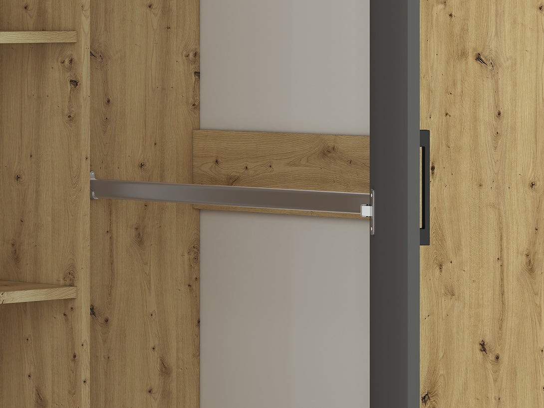 Die Farbkombination aus Weiß, Anthrazit und Artisan Eiche schafft ein modernes und harmonisches Gesamtbild – perfekt für Jugend- oder Schlafzimmer.