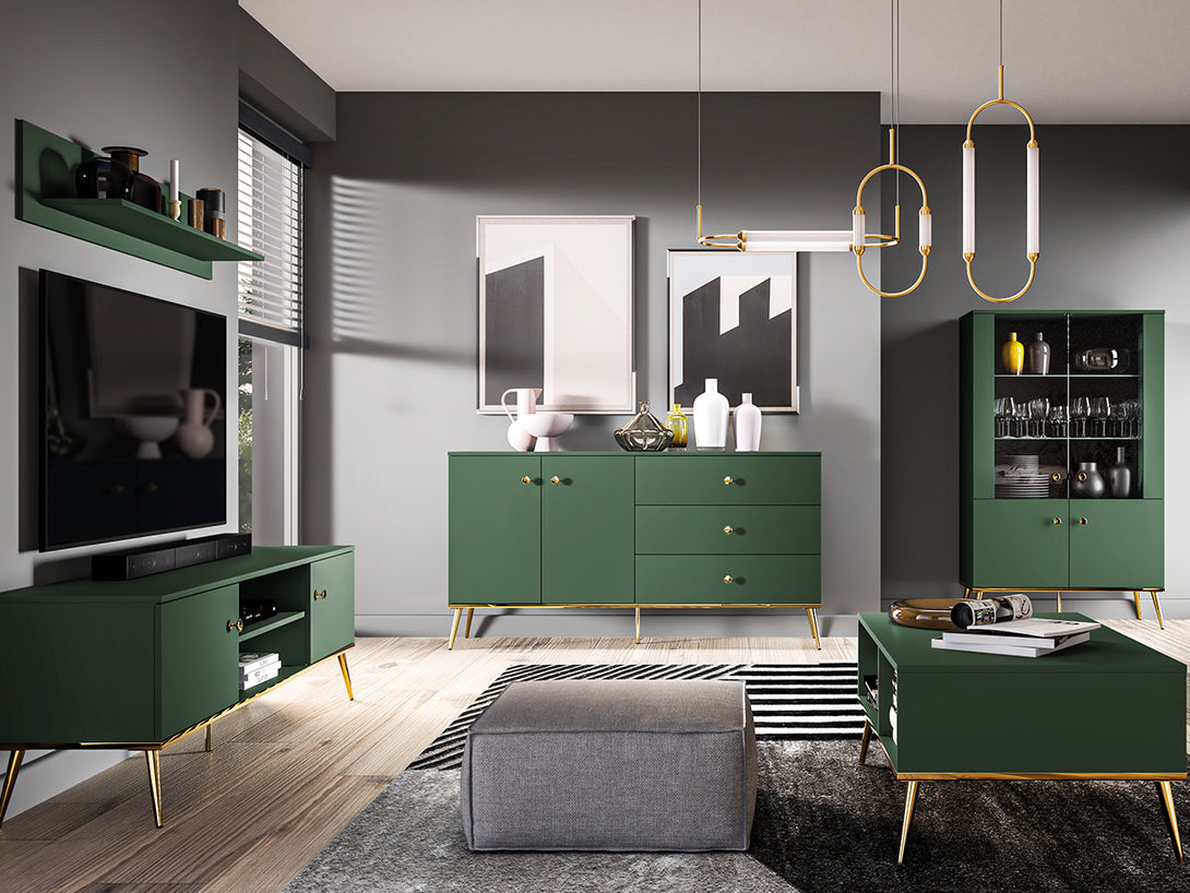 Das FOREST Set mit 5 stilvoll designten Möbelstücken bringt Ordnung, Funktionalität und moderne Eleganz in Ihr Wohnzimmer. Mit einer harmonischen Holzoptik in Labrador-Farbton bietet es eine durchdachte Kombination aus Aufbewahrung, Präsentation und Wohnkomfort. Das Set umfasst eine Vitrine mit Glasdetails, eine geräumige Kommode, ein praktisches TV-Board, einen eleganten Couchtisch sowie ein funktionales Wandregal – alles abgestimmt in Design und Material. Die hochwertige Verarbeitung mit laminierten Platten und ABS-Kanten sorgt für Langlebigkeit und Stabilität.