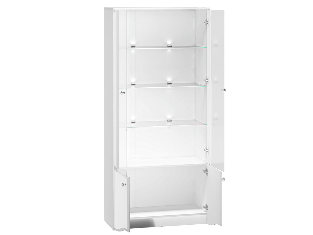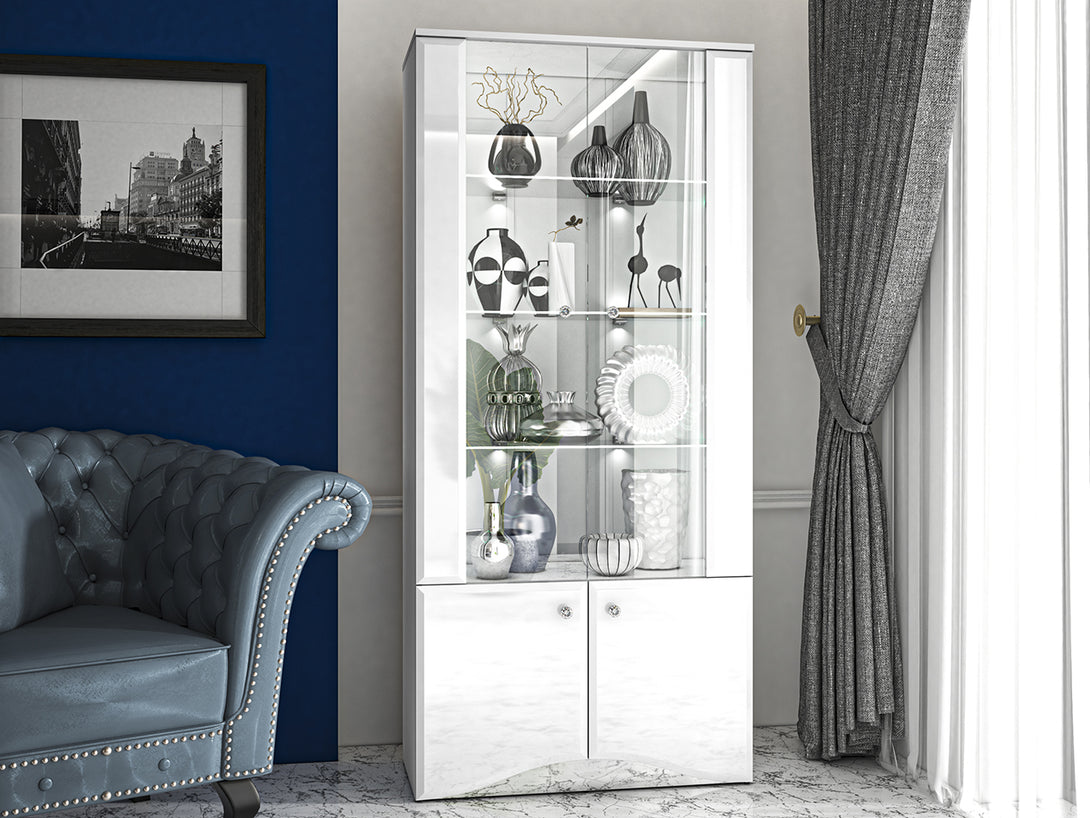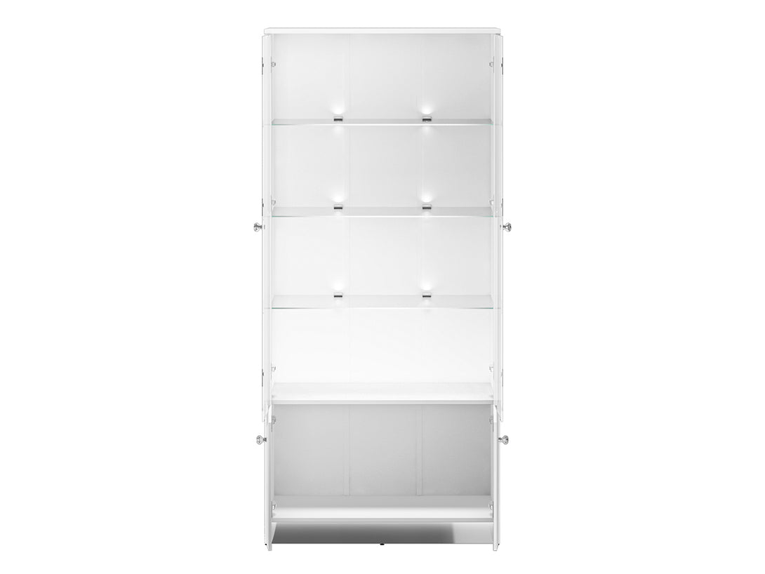 Die stilvolle GLAMOUR 01 Vitrine überzeugt durch ihr elegantes Design in Hochglanzoptik und bietet eine perfekte Bühne für Ihre Lieblingsstücke. Die Kombination aus zertifiziertem, gehärtetem Glas und hochwertiger Verarbeitung sorgt für eine moderne und langlebige Lösung zur Präsentation und Aufbewahrung. Optionales LED-Beleuchtungssystem bringt zusätzliche Atmosphäre in Ihr Wohnambiente und hebt die Exponate besonders hervor. Die leise Soft-Close-Funktion und robuste ABS-Kanten ergänzen das durchdachte Konzept dieser hochwertigen Glasvitrine.