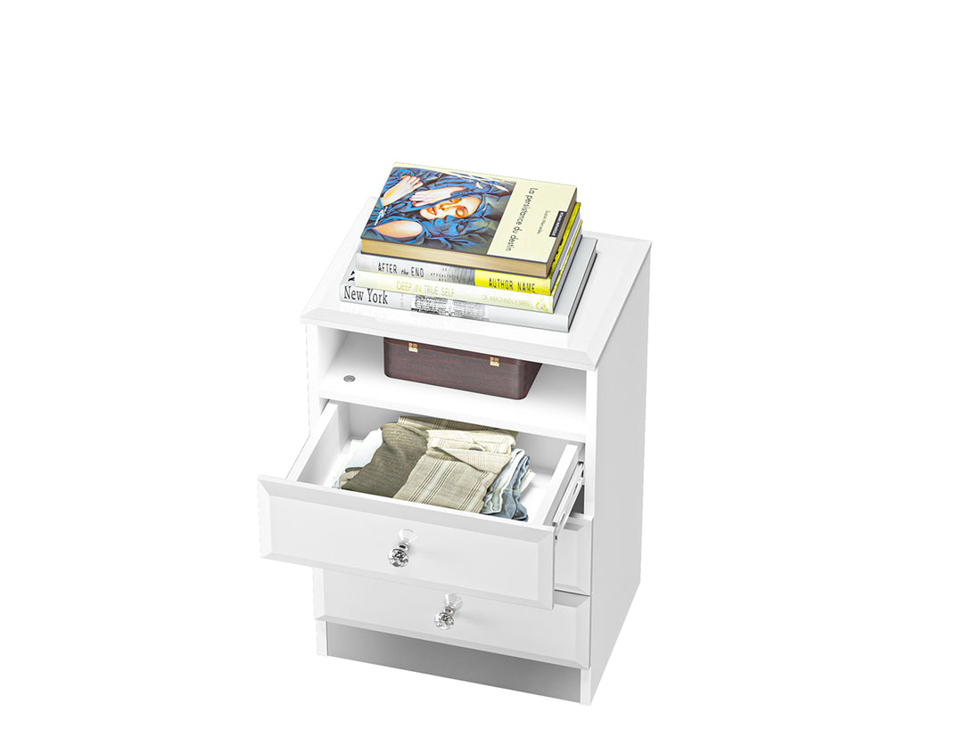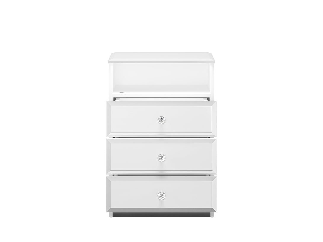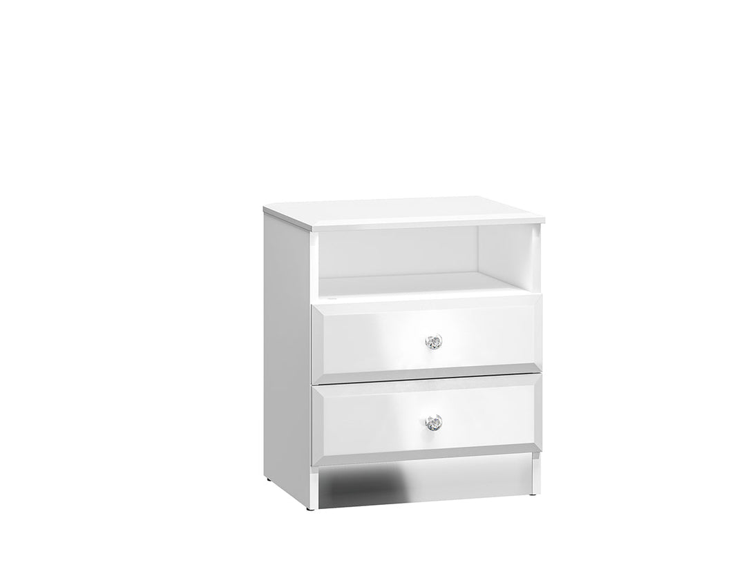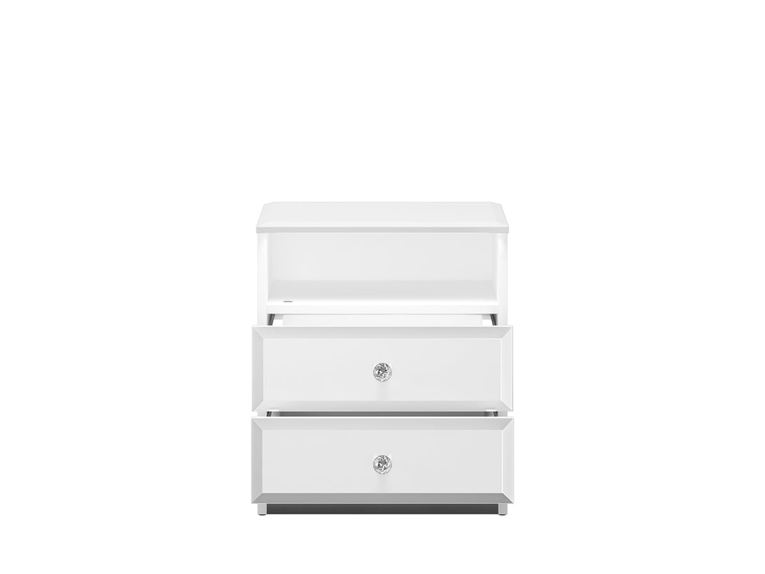 Der GLAMOUR Nachttisch vereint minimalistisches Design mit funktionaler Raffinesse und passt perfekt in moderne Schlafzimmer. Die hochwertige Hochglanz-Front in Weiß unterstreicht das elegante Erscheinungsbild, während das kompakte Format sich ideal für die Platzierung neben dem Bett eignet. Die grifflosen Fronten und der Vollauszug der Schublade sorgen für ein nahtloses, stilvolles Gesamtbild und einfache Bedienung. Durch robuste Materialien und eine präzise Verarbeitung garantiert dieses Möbelstück Langlebigkeit und Stabilität bei täglichem Gebrauch.