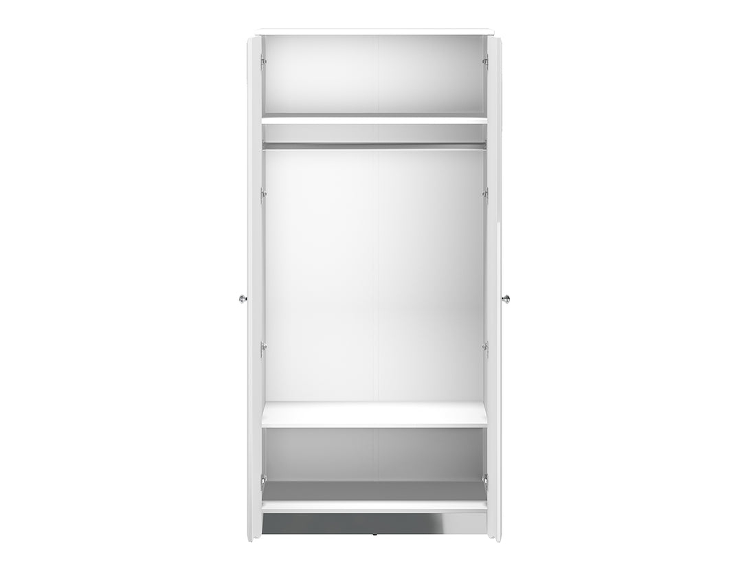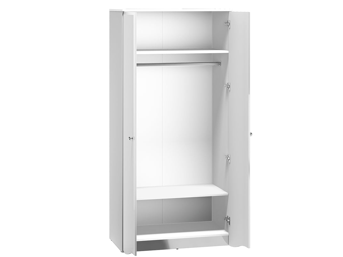 Der GLAMOUR 08 Kleiderschrank überzeugt durch seine elegante Gestaltung und hohe Funktionalität. Mit einer glänzenden Front in Weiß und einem klassischen Korpus bietet er eine moderne Lösung zur stilvollen Aufbewahrung im Schlafzimmer, Flur oder Ankleidebereich. Die grifflosen Türen mit Soft-Close-Funktion sorgen für ein sanftes und geräuschloses Schließen.