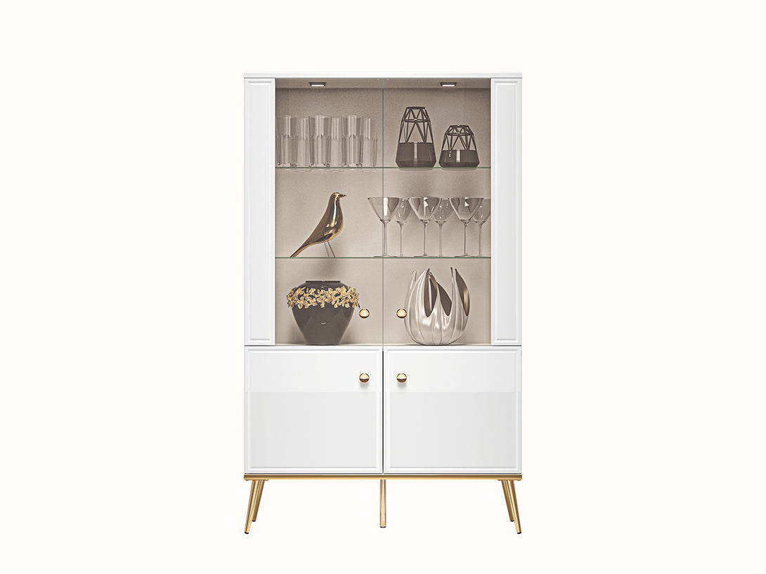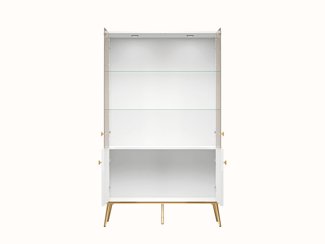 Das GOLDIN Wohnzimmer-Set vereint elegantes Design mit höchster Funktionalität und Qualität. Jedes Möbelstück ist aus erstklassigen Materialien gefertigt und verfügt über weiße, hochglänzende MDF-Fronten kombiniert mit robusten, laminierten Spanplatten und ABS-Kanten für erhöhte Widerstandsfähigkeit. Die Soft-Close-Technik sorgt für ein geräuschloses und sanftes Schließen von Türen und Schubladen, was den täglichen Gebrauch besonders angenehm macht.