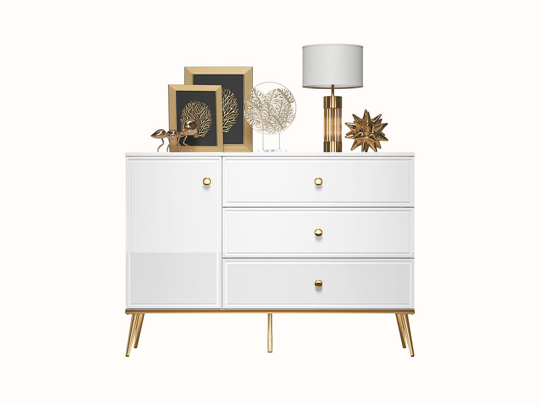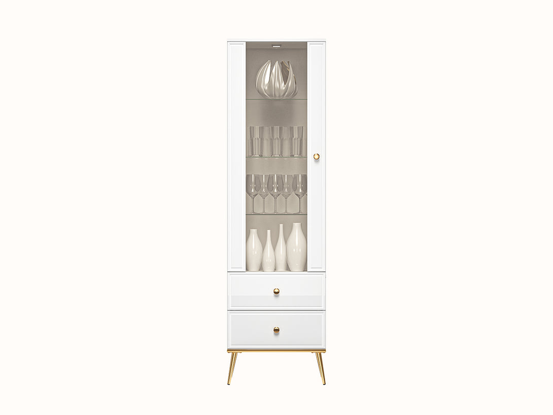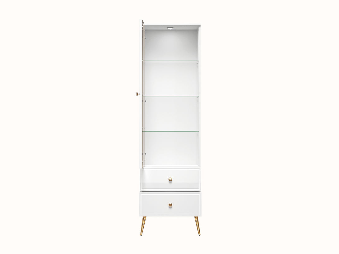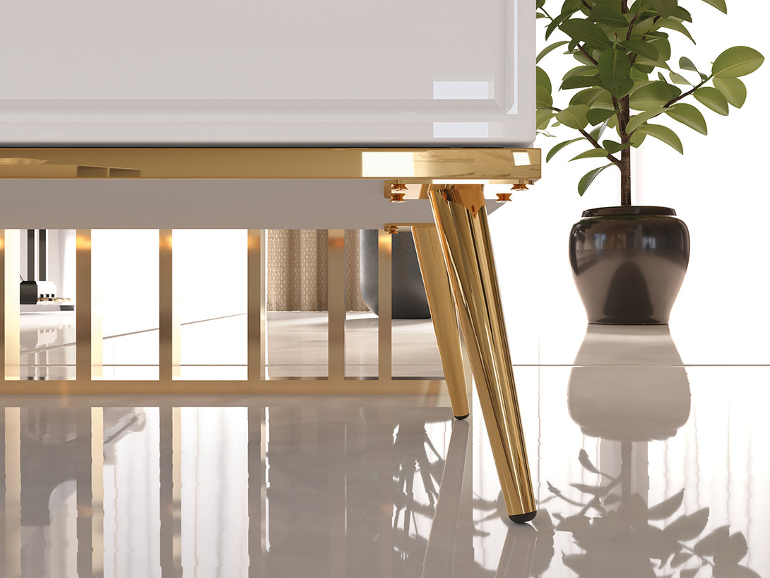 Das GOLDIN Wohnzimmer-Set besteht aus fünf sorgfältig aufeinander abgestimmten Möbelstücken, die modernes Design und funktionale Raffinesse perfekt vereinen. Mit hochglänzenden Fronten in elegantem Weiß, hochwertiger Verarbeitung und durchdachten Details bringt dieses Set stilvolle Harmonie in jeden Wohnraum. Die Kombination aus robusten Materialien, praktischen Funktionen wie Soft-Close und Push-to-Open sowie zusätzlichen Ausstattungen wie LED-Beleuchtung macht dieses Set nicht nur optisch ansprechend, sondern auch besonders benutzerfreundlich.Ob TV-Board, Vitrine mit Glas und Beleuchtung, geräumige Kommode, funktionaler Kleiderschrank oder eleganter Couchtisch – jedes Element erfüllt höchste Qualitätsansprüche und sorgt für eine einheitliche, moderne Wohnatmosphäre. Ideal für alle, die Wert auf Ästhetik, Ordnung und langlebige Möbel legen.