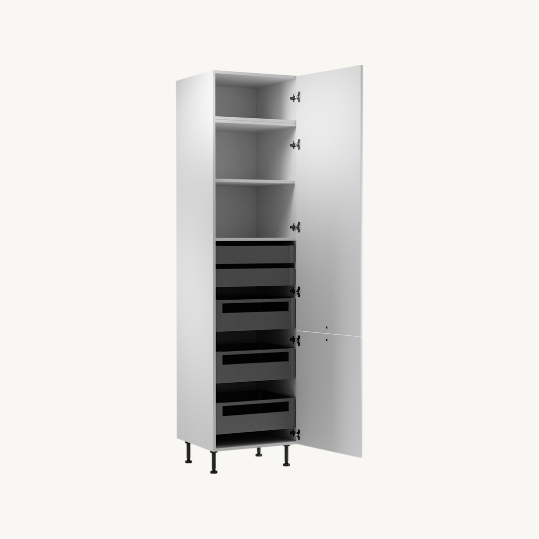 Hochschrank D60T P/L AX – Livaro Weiß / Weiß Rahmen mit 5 Innenschubladen