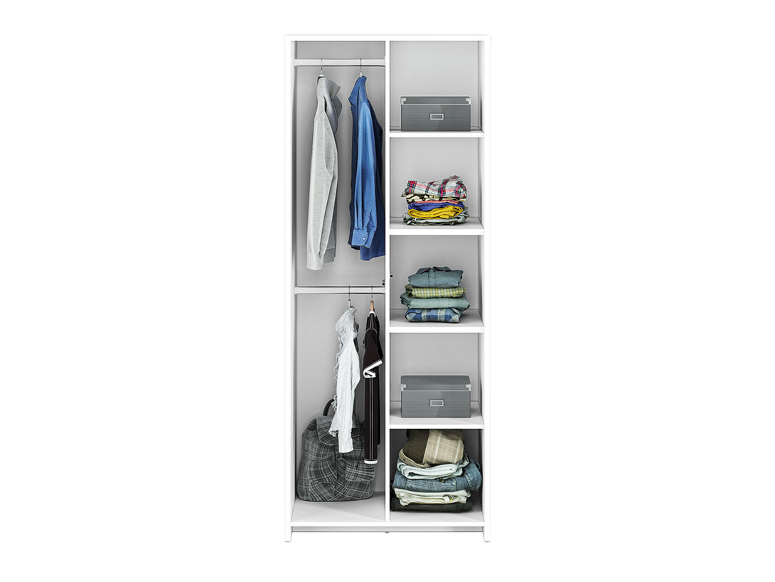 Der KENDO 03 Kleiderschrank besticht durch sein zeitloses Design und die hochwertige Verarbeitung mit langlebigen Laminatplatten und robusten ABS-Kanten. Die schlichte weiße Oberfläche fügt sich nahtlos in verschiedene Einrichtungsstile ein und bietet platzsparenden Stauraum für Kleidung und Accessoires.