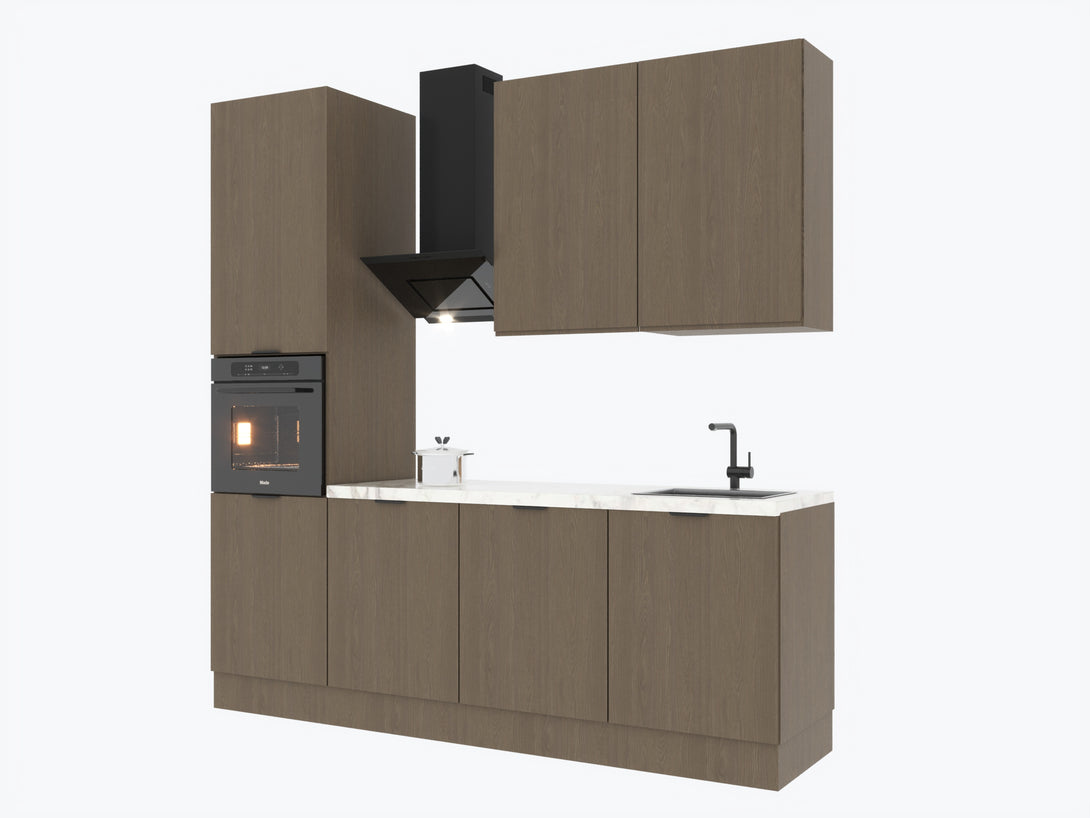 Küchenzeile 240 cm Livaro – KU-S29 – Dunkle Eiche – Ohne Arbeitsplatte & Elektrogeräte