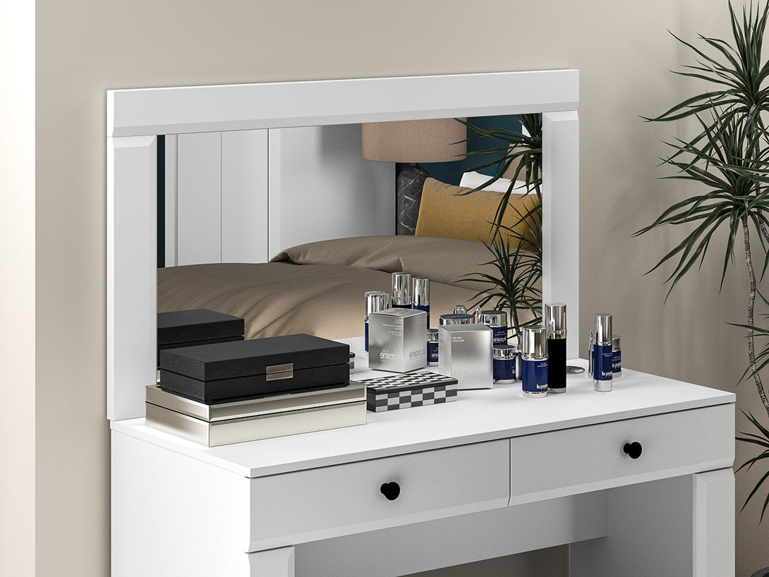 Der LAHTI 13 Wandspiegel besticht durch sein schlankes und modernes Design, das jedem Raum eine helle und freundliche Atmosphäre verleiht. Die weiße matte MDF-Front kombiniert sich harmonisch mit dem weißen Korpus und sorgt für ein stilvolles Gesamtbild. Dank hochwertiger laminiertem Platte mit ABS-Kante ist der Spiegel besonders langlebig und pflegeleicht.
