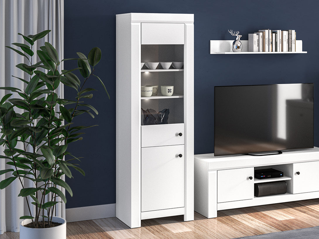 Das 3-teilige Wohnzimmer-Set LAHTI vereint modernes Design mit funktionaler Ausstattung und hoher Verarbeitungsqualität. Es besteht aus der stilvollen Vitrine LAHTI 06 mit Glaselement, dem großzügigen TV-Schrank LAHTI 11 und dem Wandregal LAHTI 18 – ideal zur Präsentation von Dekoration oder Büchern. Die mattweißen MDF-Fronten sorgen für eine helle, elegante Raumwirkung. Optional kann das Set mit dem LED-Beleuchtungsset 3LED01NB1Z ergänzt werden.