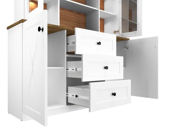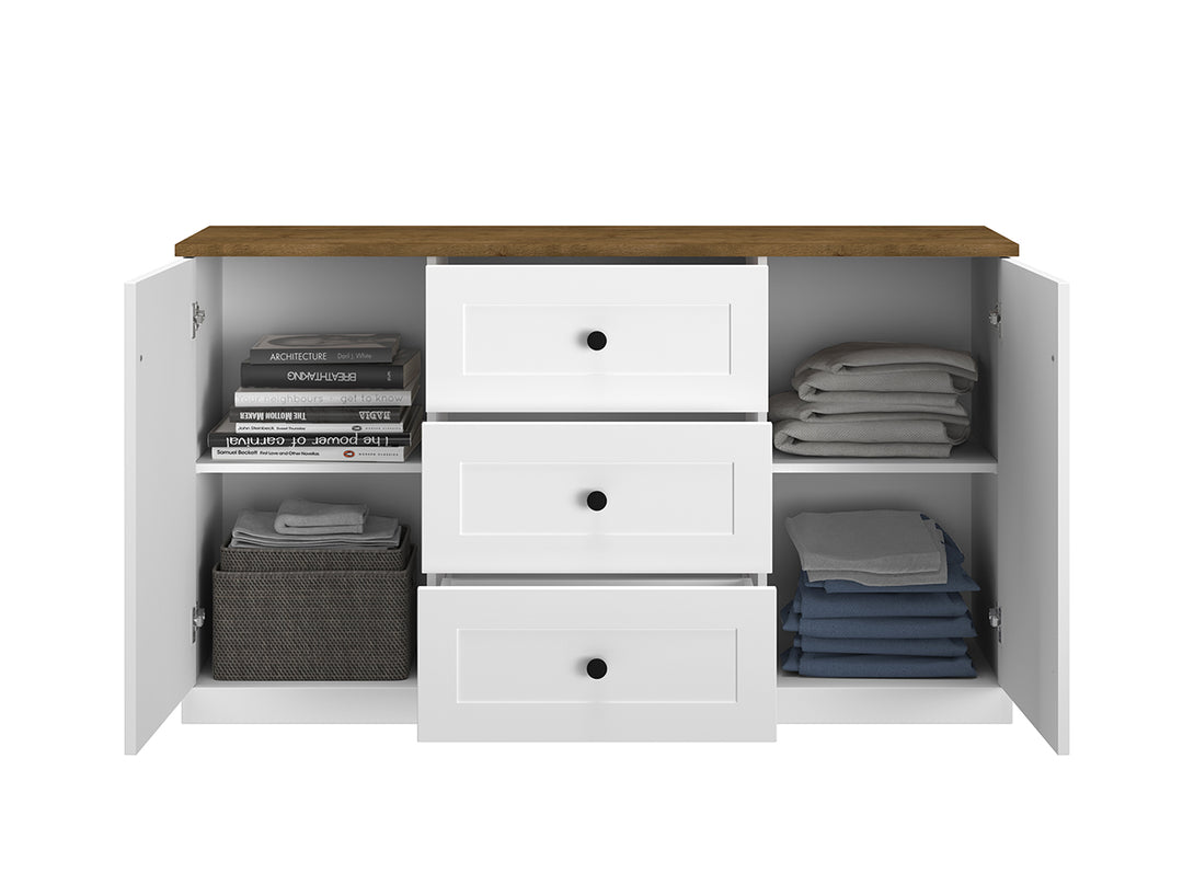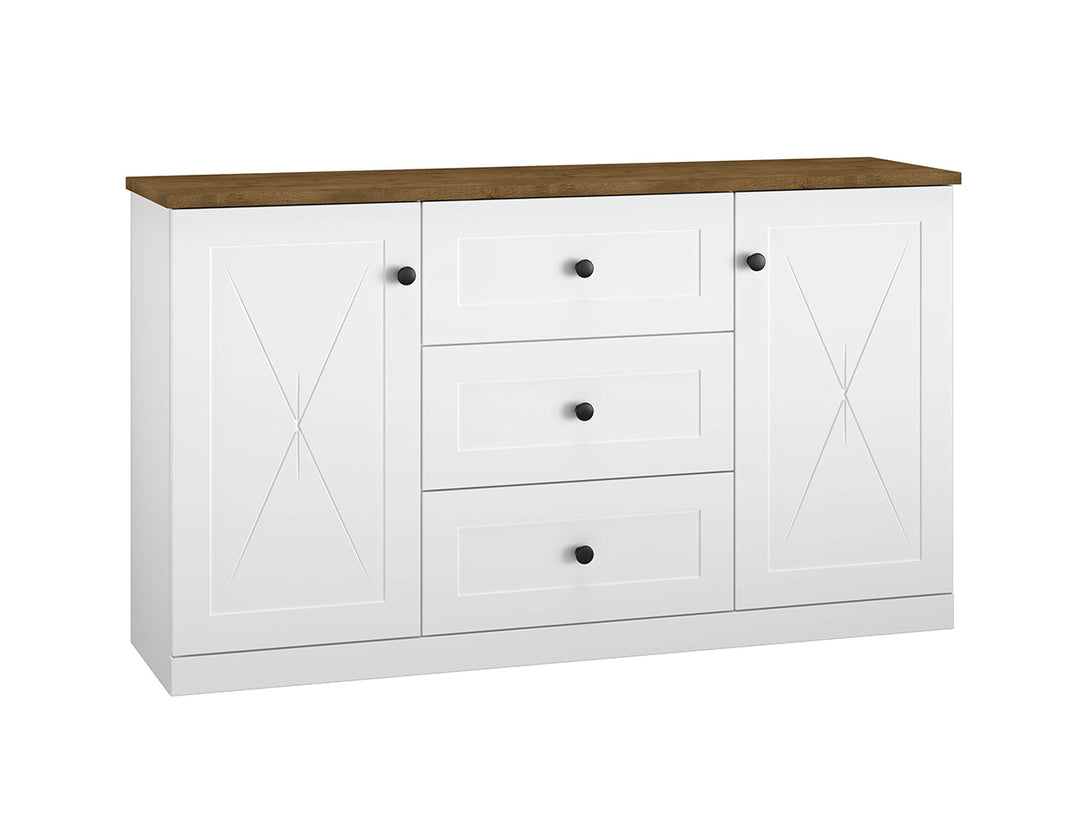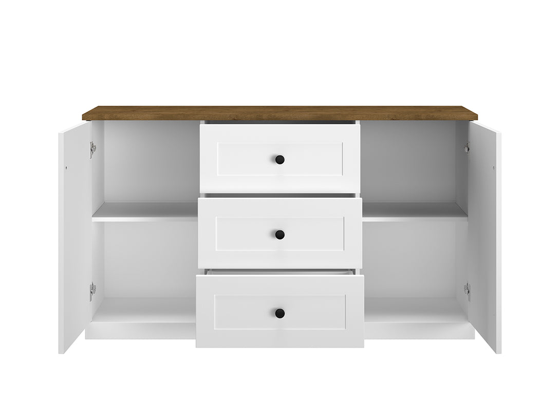 Die LILLE 06 Kommode bietet eine elegante Kombination aus Lefkas-Eiche-Dekor und einer dezenten weißen MDF-Front. Mit ihrem großzügigen Stauraum und dem modernen Design ist sie die perfekte Ergänzung für jedes stilvolle Wohnzimmer oder Schlafzimmer. Dank der hochwertigen Verarbeitung, der Soft-Close-Technik und der robusten Materialien garantiert die Kommode eine komfortable und langlebige Nutzung. Die grifflosen Fronten und die klare Linienführung verleihen dem Möbelstück ein zeitloses, elegantes Erscheinungsbild.