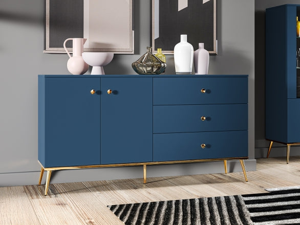 Die MARINE Kommode bietet mit ihrem modernen Design und der großzügigen Ablagefläche eine praktische und stilvolle Ergänzung für Ihr Zuhause. Die hochwertige Verarbeitung in ansprechender Holzoptik und die stabile Bauweise sorgen für Langlebigkeit und ein elegantes Erscheinungsbild. Dank der robusten Materialien und der pflegeleichten Oberfläche eignet sich diese Kommode ideal zur Aufbewahrung verschiedenster Gegenstände im Wohn- oder Schlafbereich.
