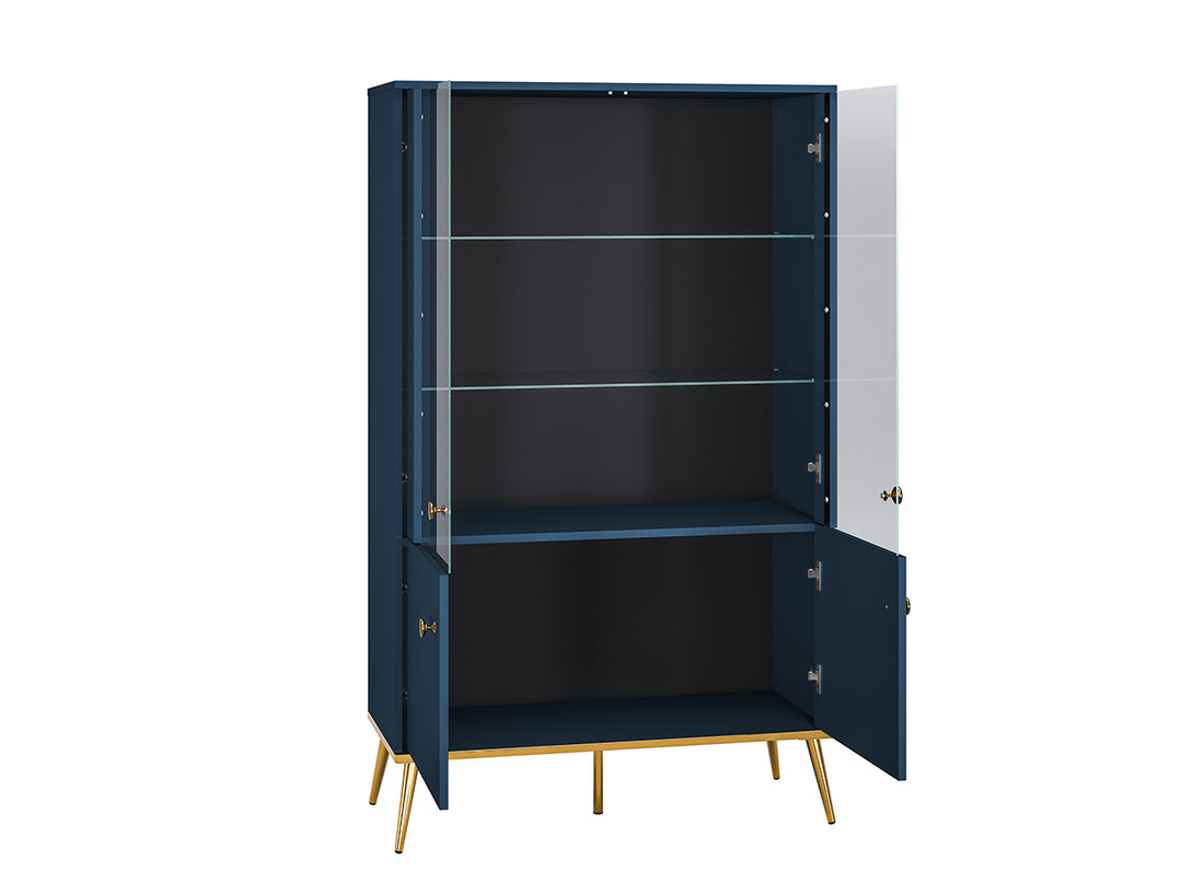 Das MARINE Wohnzimmer-Set besteht aus sechs perfekt aufeinander abgestimmten Elementen, die Ihrem Wohnzimmer ein modernes und stilvolles Ambiente verleihen. Das Set umfasst: eine große Vitrine, eine mittlere Vitrine, eine geräumige Kommode, ein TV-Lowboard, einen Couchtisch und ein Wandregal. Dieses Set bietet nicht nur elegantes Design, sondern auch großzügigen Stauraum für Ihre Alltagsgegenstände und Dekoration. Die harmonische Kombination der Möbelstücke sorgt für ein einheitliches und attraktives Gesamtbild im Wohnzimmer.