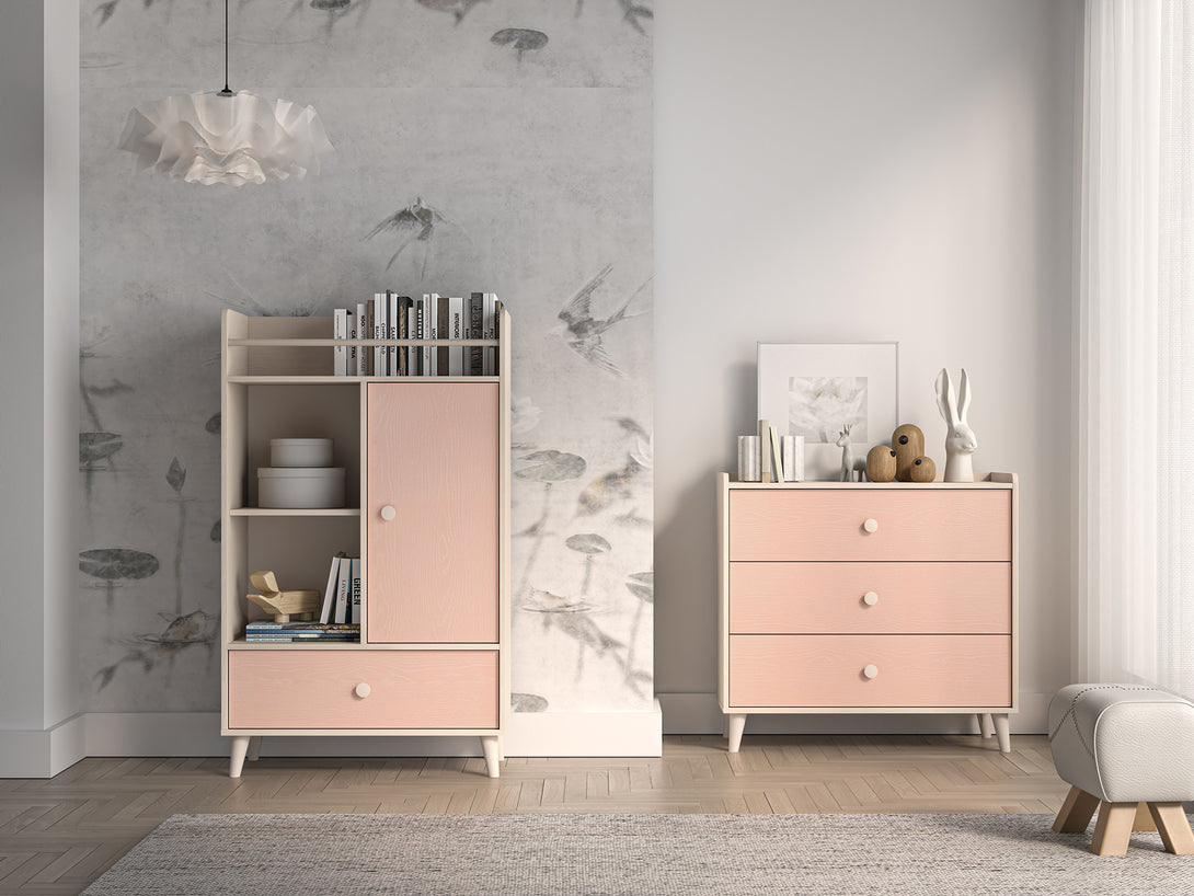 Die MEVEL 04 Kommode überzeugt durch ihr elegantes Design und hohe Funktionalität. Die harmonische Kombination aus modernem Farbspiel und praktischer Ausstattung macht sie zur perfekten Ergänzung für jedes stilvolle Wohnambiente. Mit ihrer robusten Konstruktion und den durchdachten Details bietet sie nicht nur viel Stauraum, sondern auch Langlebigkeit und Komfort.
