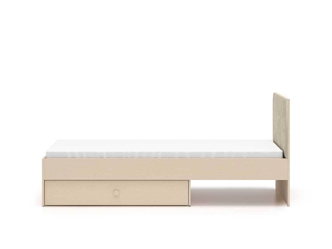 Das MEVEL 08 Bett überzeugt durch sein elegantes Design und hochwertige Materialien und ist ideal für stilvolle Schlafzimmer oder Jugendzimmer geeignet. Der gepolsterte Kopfteil mit weichem Veloursstoff sorgt für zusätzlichen Komfort beim Lesen oder Entspannen, während die widerstandsfähige Konstruktion für Langlebigkeit steht. Die Kombination aus Sandstein-Holzdekor und beigem Velours verleiht dem Bett eine warme, einladende Ausstrahlung – perfekt für moderne Wohnkonzepte mit stilvollem Anspruch.