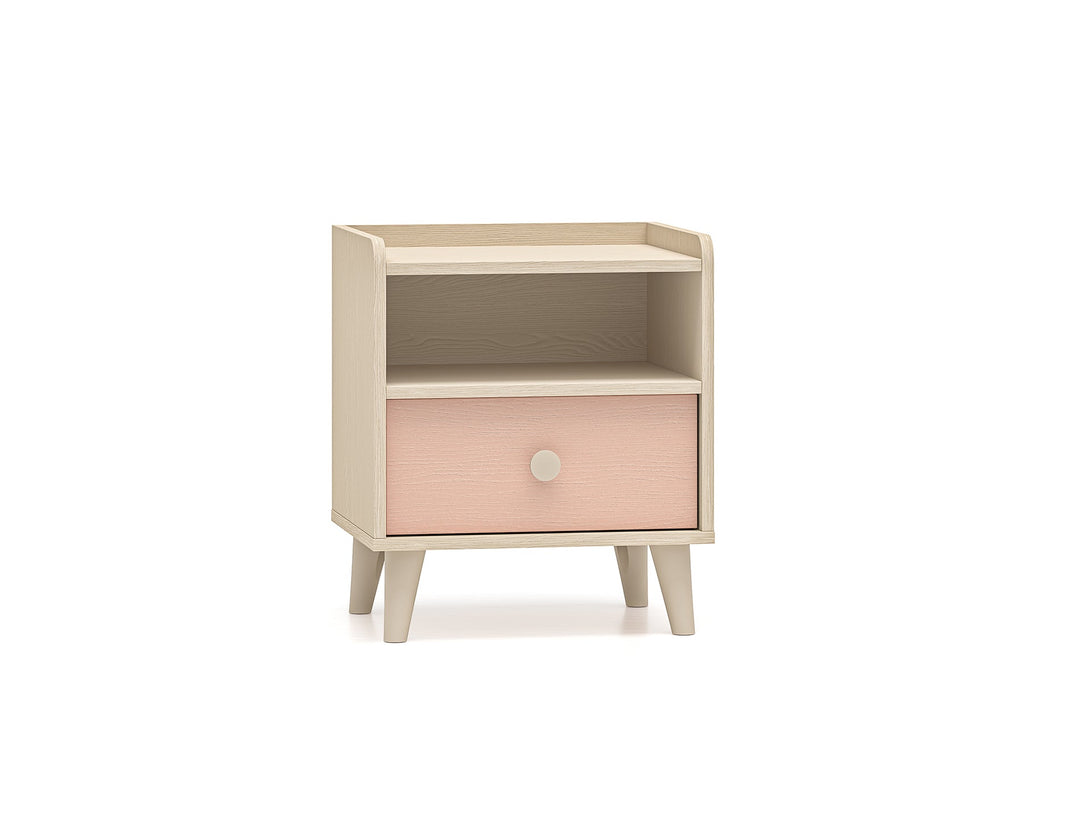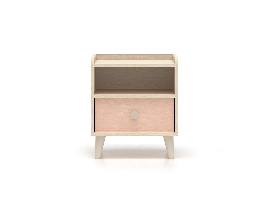 Der MEVEL 10 Nachttisch kombiniert funktionales Design mit einem modernen Look und ist die ideale Ergänzung für jedes stilvolle Schlafzimmer. Mit seiner cleveren Aufteilung bietet er sowohl eine praktische Ablagefläche als auch eine geräumige Schublade, die den Alltag erleichtert und Ordnung schafft.Das harmonische Farbspiel zwischen Millenial Pink und Piasek Pustyni verleiht dem Möbelstück eine sanfte und zugleich elegante Ausstrahlung. Dank hochwertiger Materialien und robuster Verarbeitung ist der Nachttisch nicht nur ästhetisch ansprechend, sondern auch langlebig und pflegeleicht.
